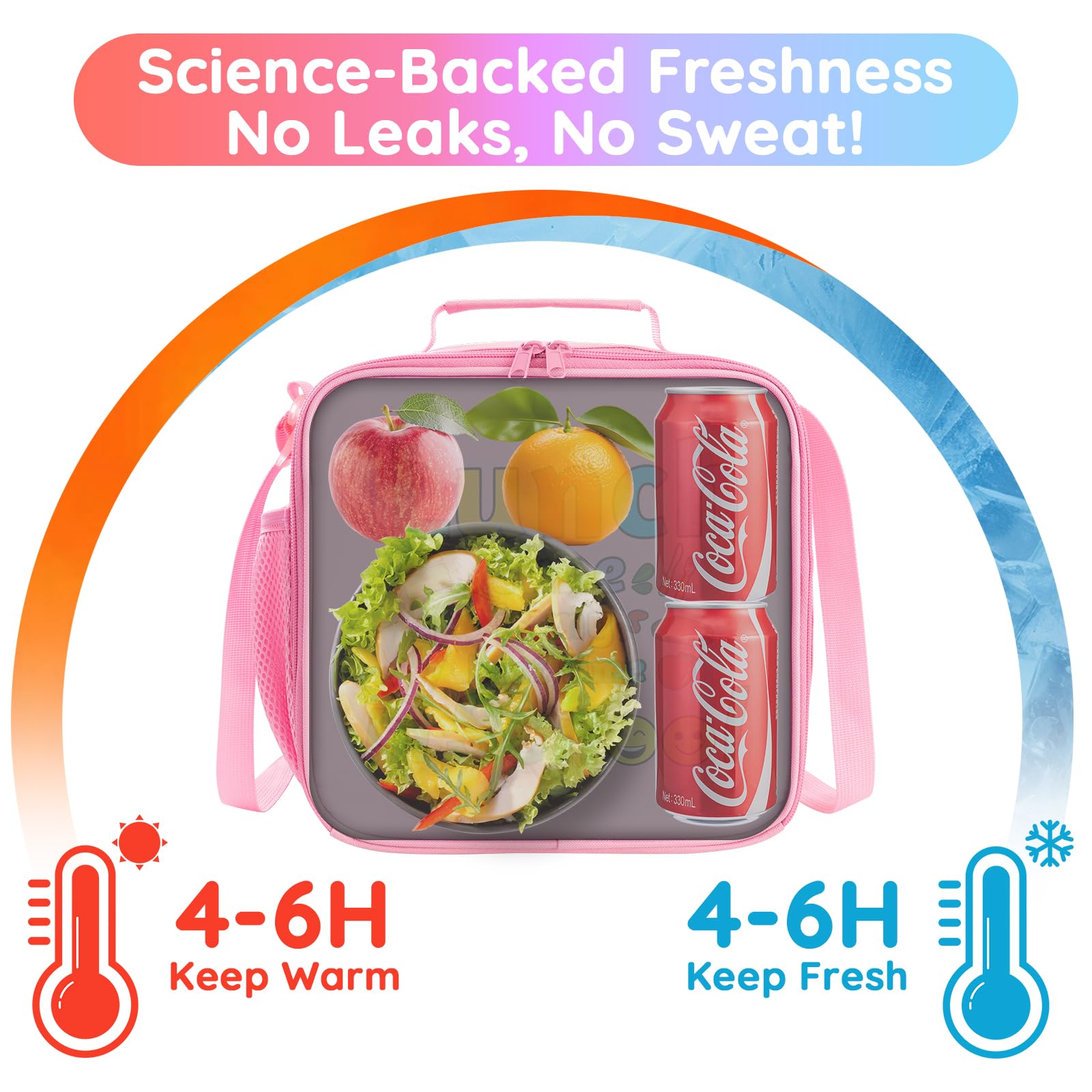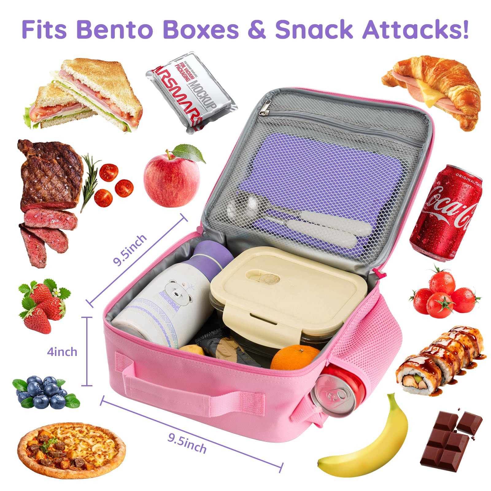 Lonchera para niñas aislada, 9.5 x 9.5 x 4 pulgadas