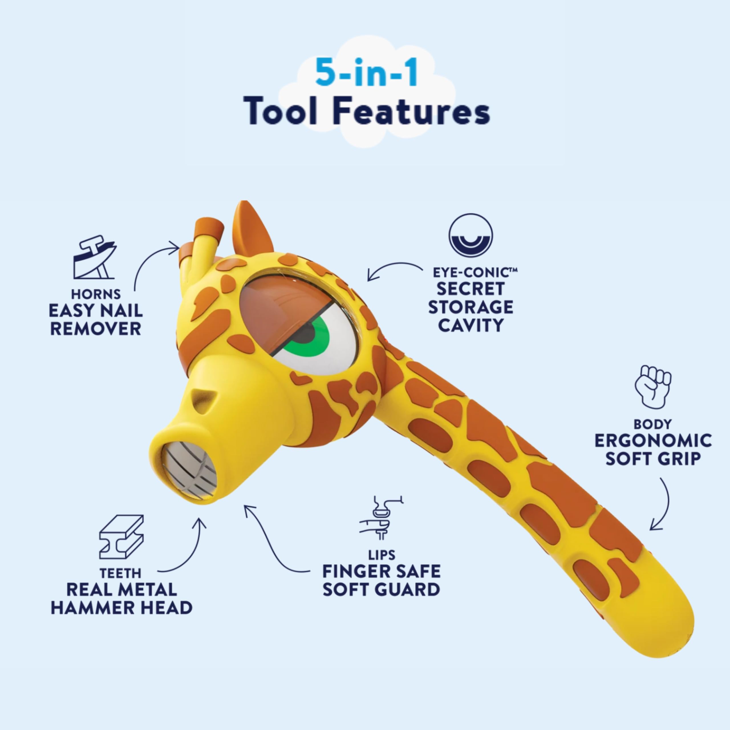 Martillo de jirafa de metal real para niños, funda de seguridad