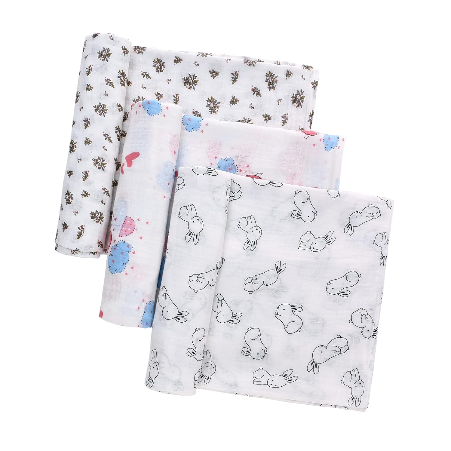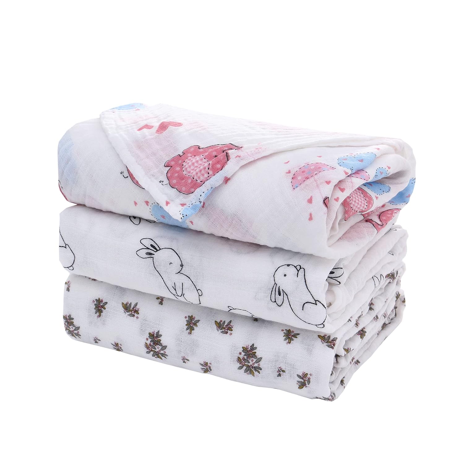Miracle Baby- Mantas de Muselina para bebé recién Nacido, Paquete de 3 Mantas
