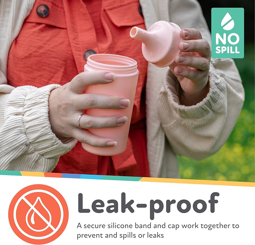- Sin fugas: una banda de silicona segura y una tapa trabajan juntas para evitar derrames y fugas