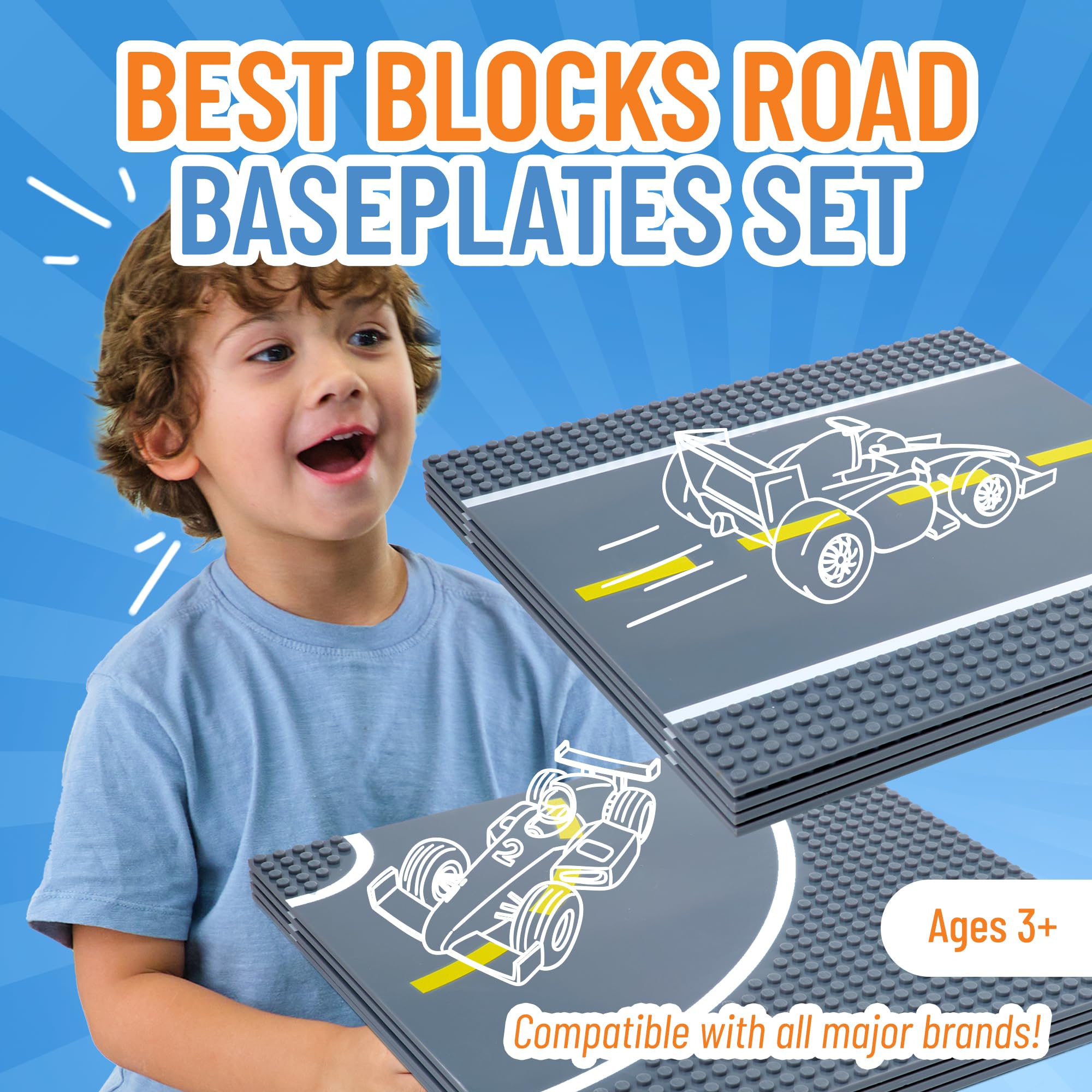 Placas de carretera apilables, 4 placas base de construcción rectas y 4 curvas