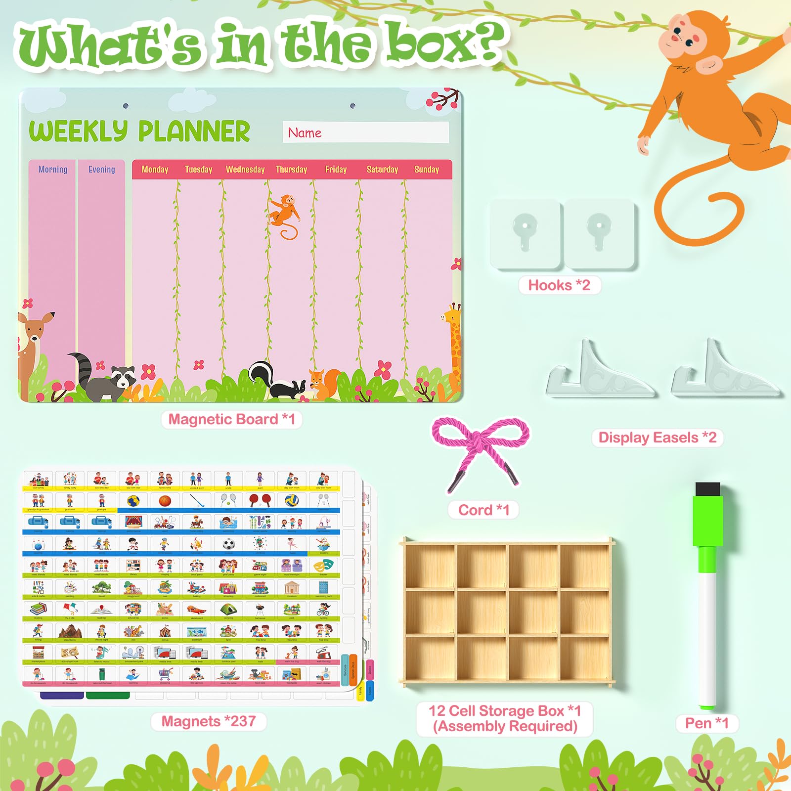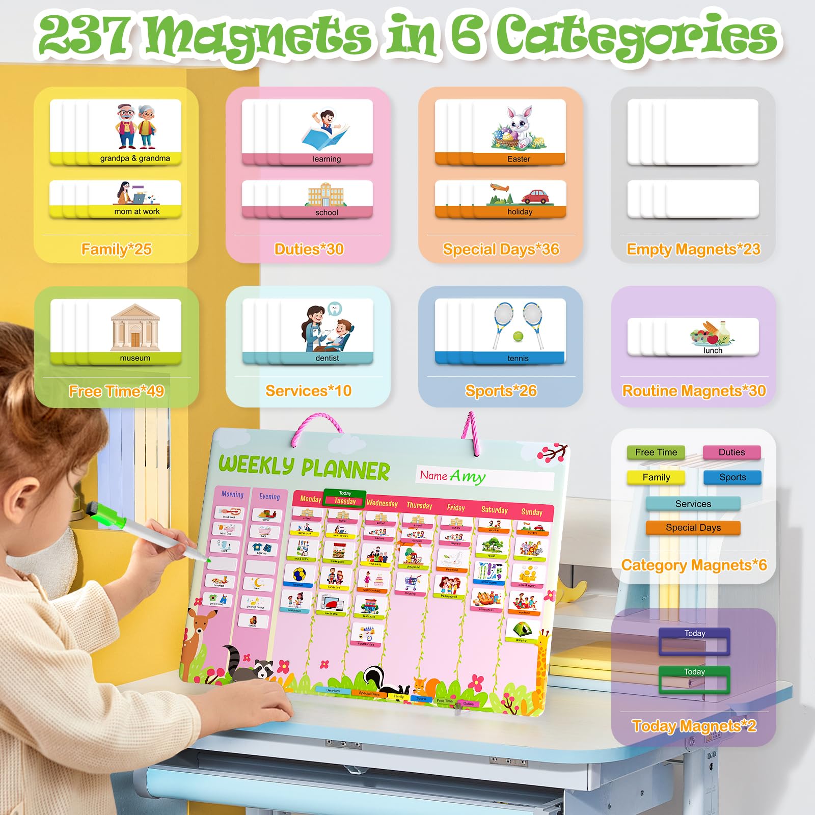 Planificador semanal visual para niños: pizarra magnética con 237 imanes