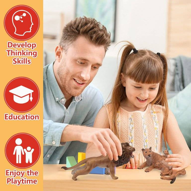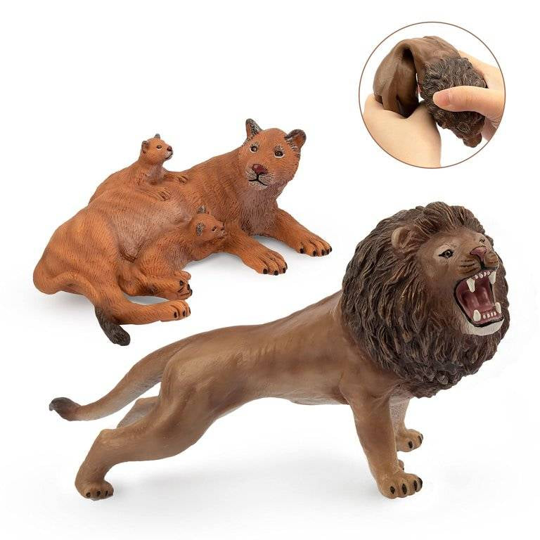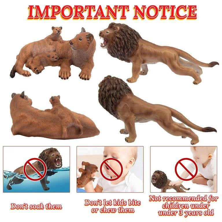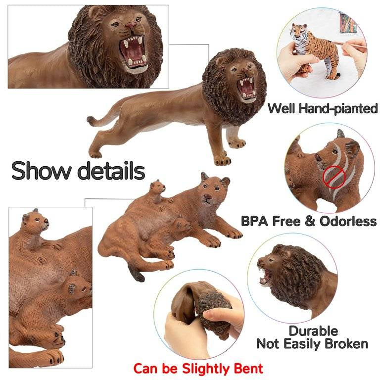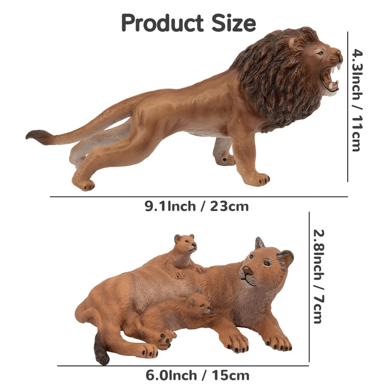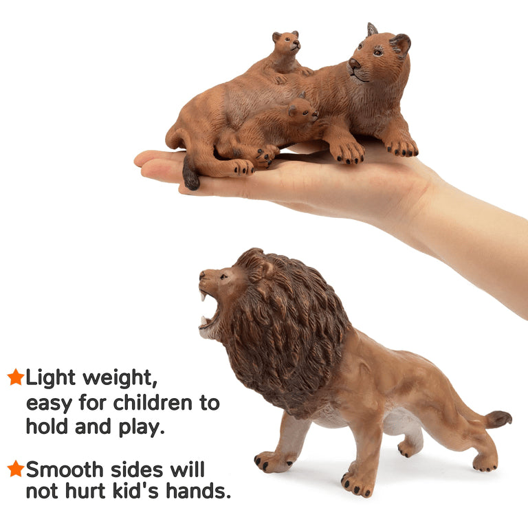TOYMANY- Figuras de león y leona con cachorros de vinilo de 6 a 9 pulgadas