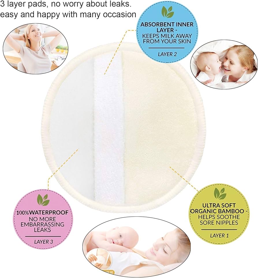 Almohadillas de lactancia reutilizables (paquete de 10) para madres que amamantan, almohadilla lavable de 4.7 pulgadas