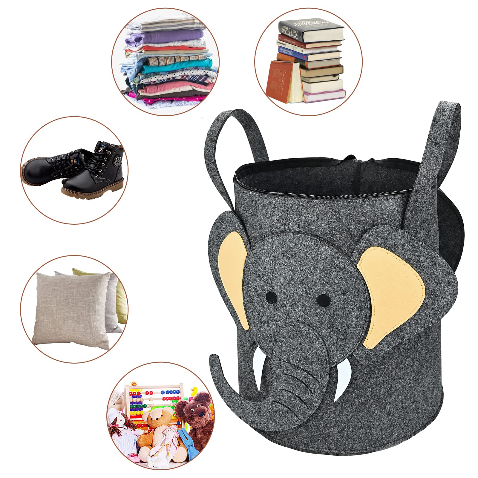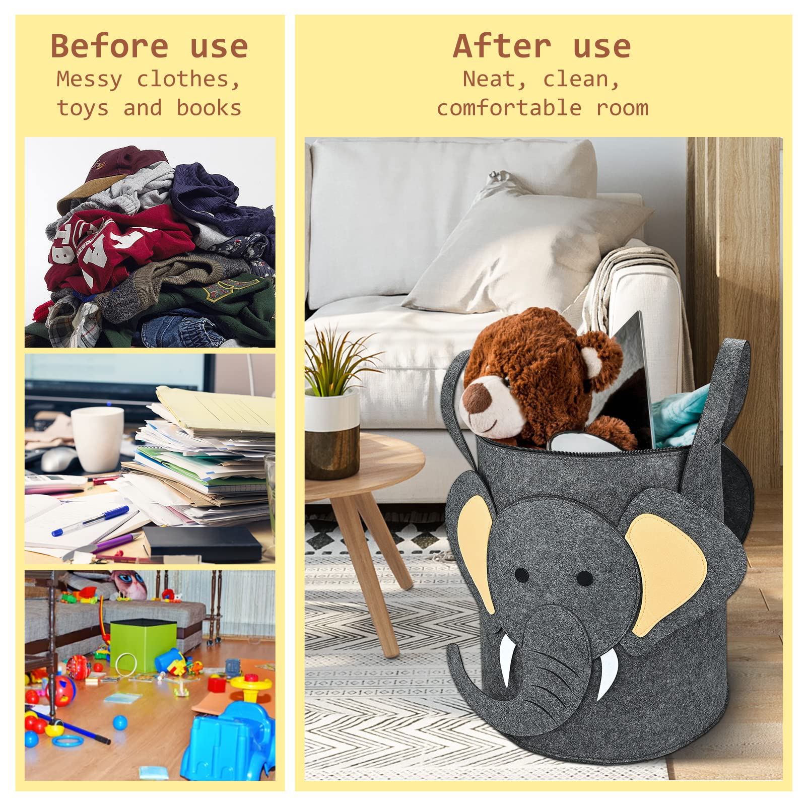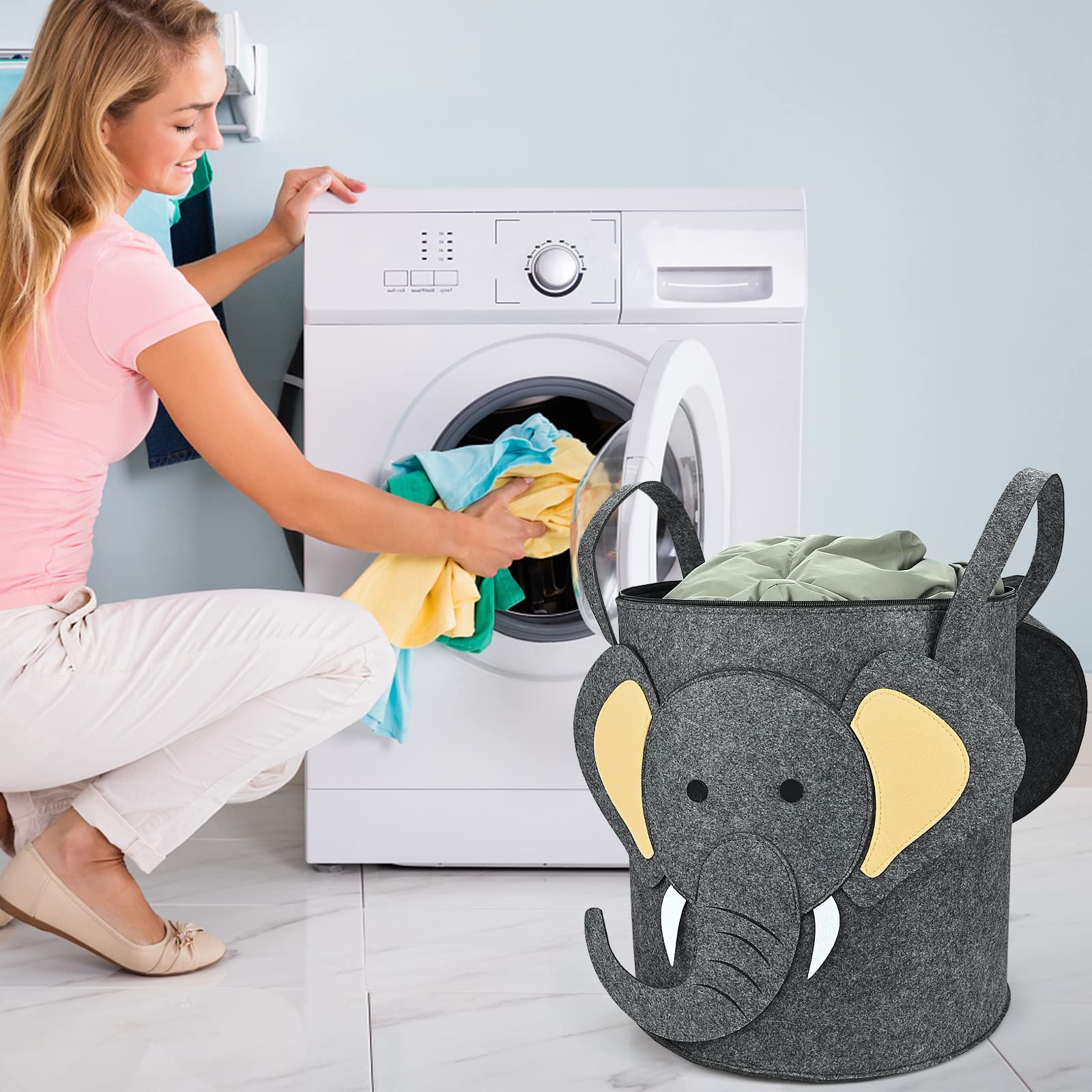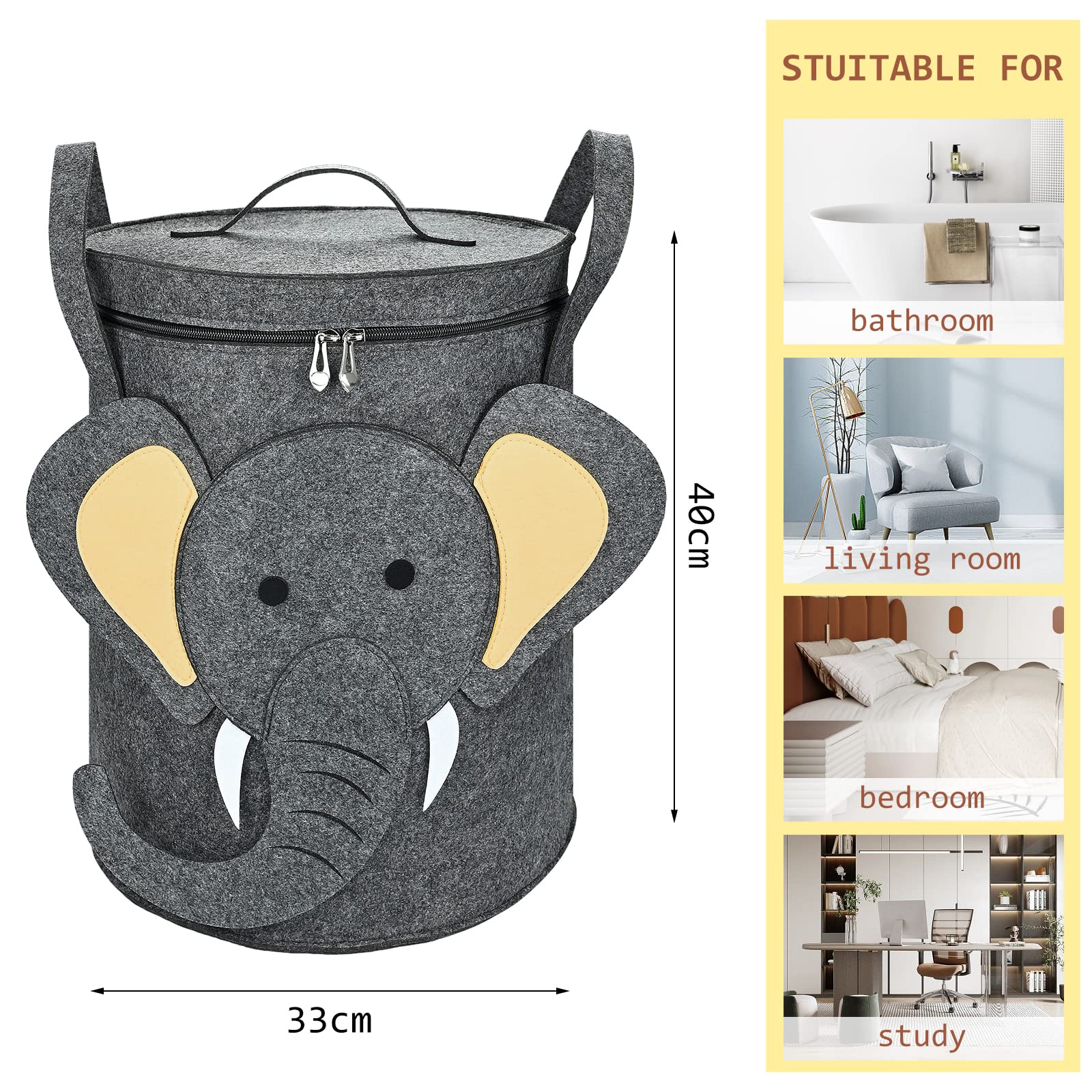 Cesta de lavandería con tapa, cesta de fieltro de dibujos animados