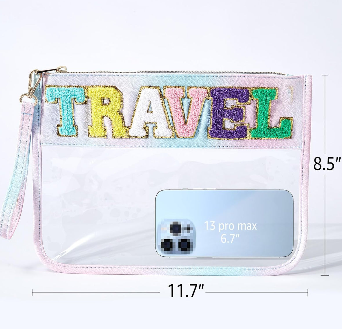 Bolsa transparente de chenilla con letras