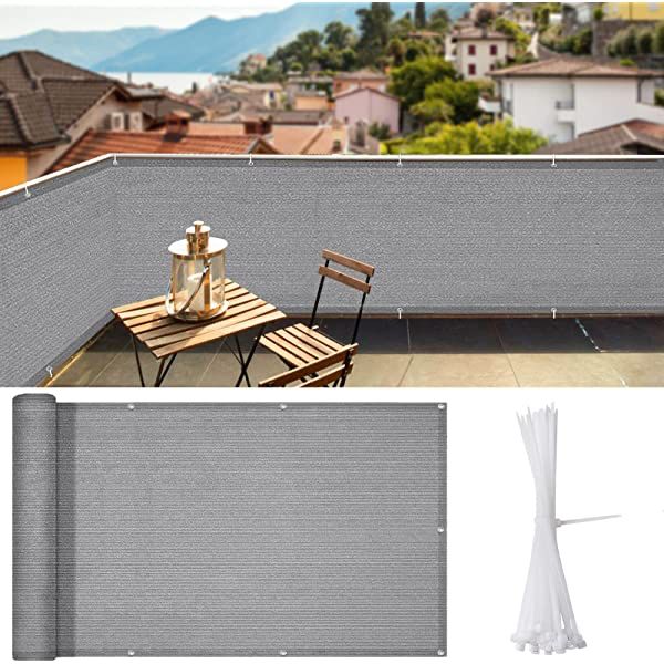 HilarityMax Pantalla de privacidad para balcón, 3.5 x 16.5 pies, negro