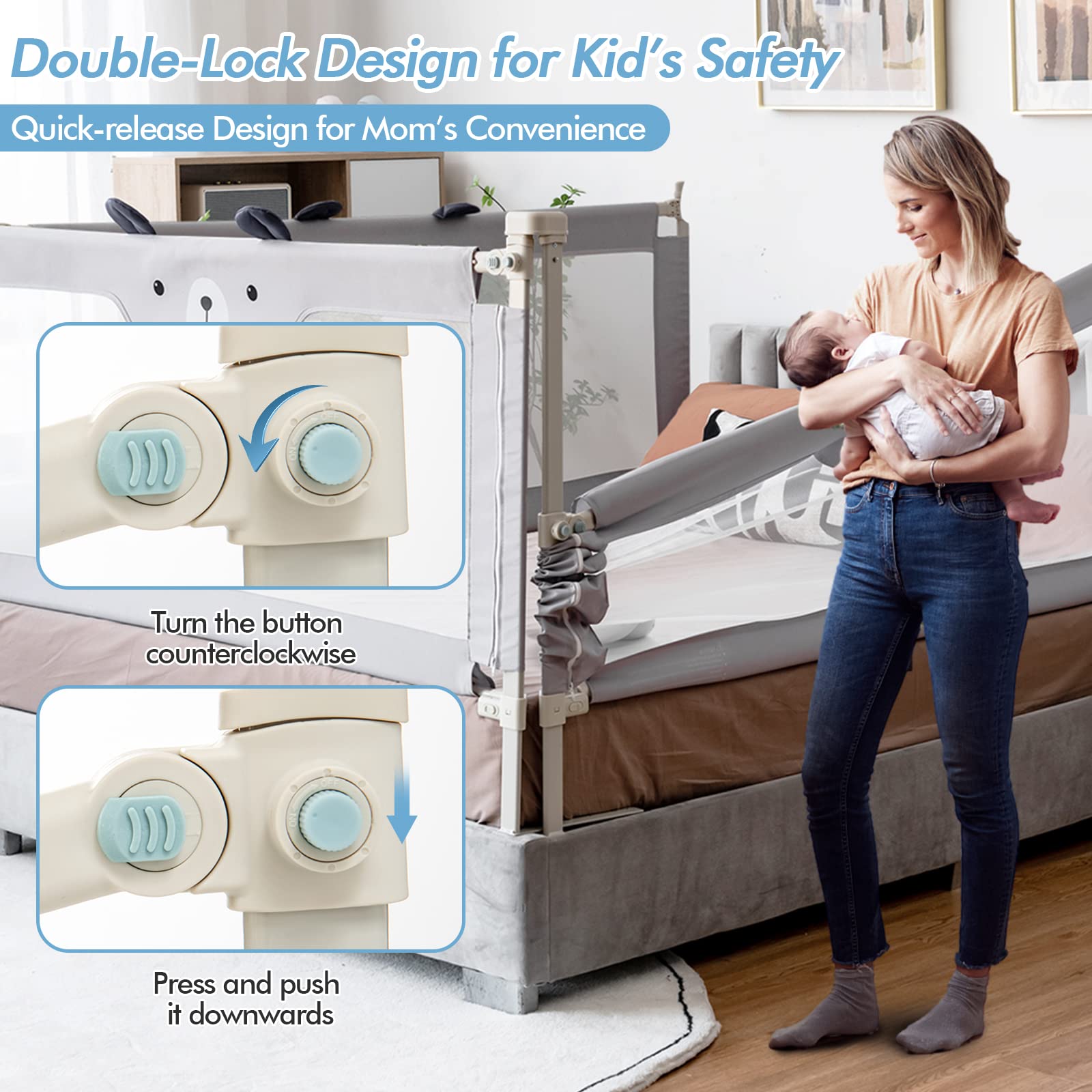 Riel para cama con malla transpirable y bloqueo de doble seguridad para niños, 1.8 metros