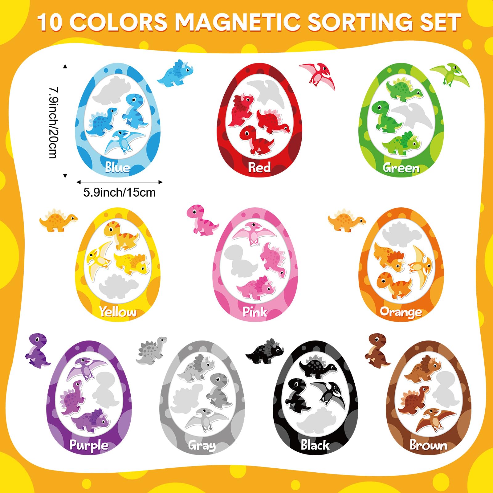 10 juegos de juguetes magnéticos de clasificación de colores de dinosaurios