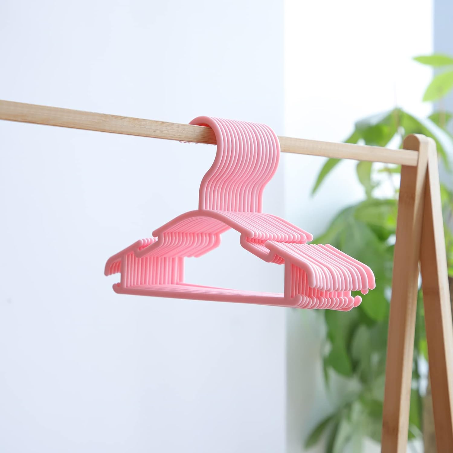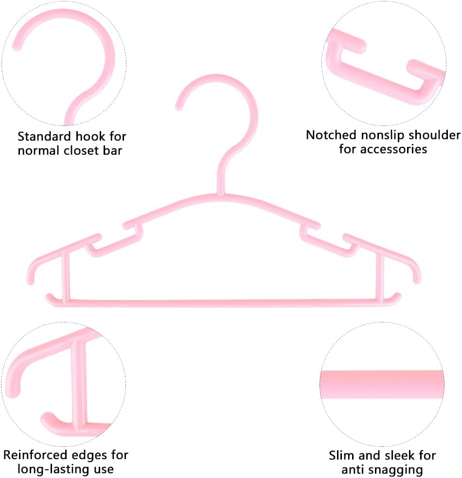 El ancho de las perchas de plástico de ropa para niños y bebés está diseñado para un estante estándar de armario normal, y estos ganchos para guardería están hechos de el mejor material de polipropileno, sin mal olor químico. Exactamente como se esperan los ganchos para niños, para tu armario familiar.