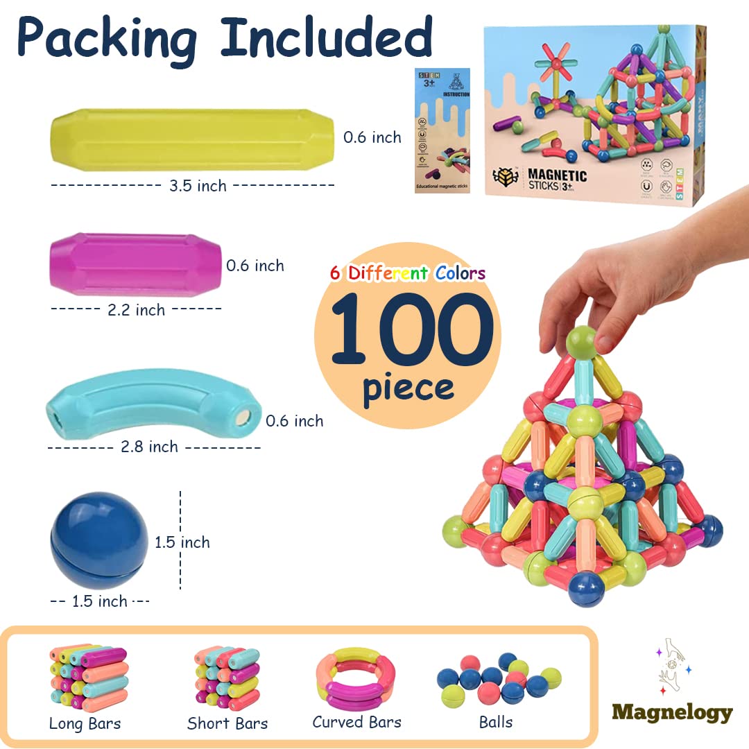 100 palos y bolas magnéticas, imanes de construcción