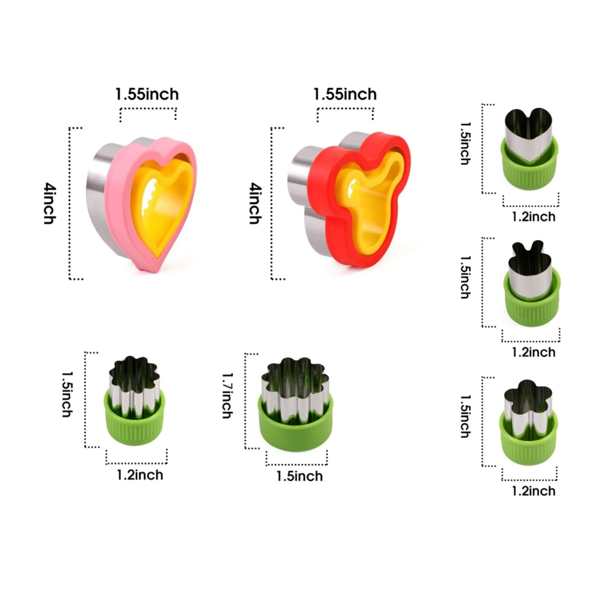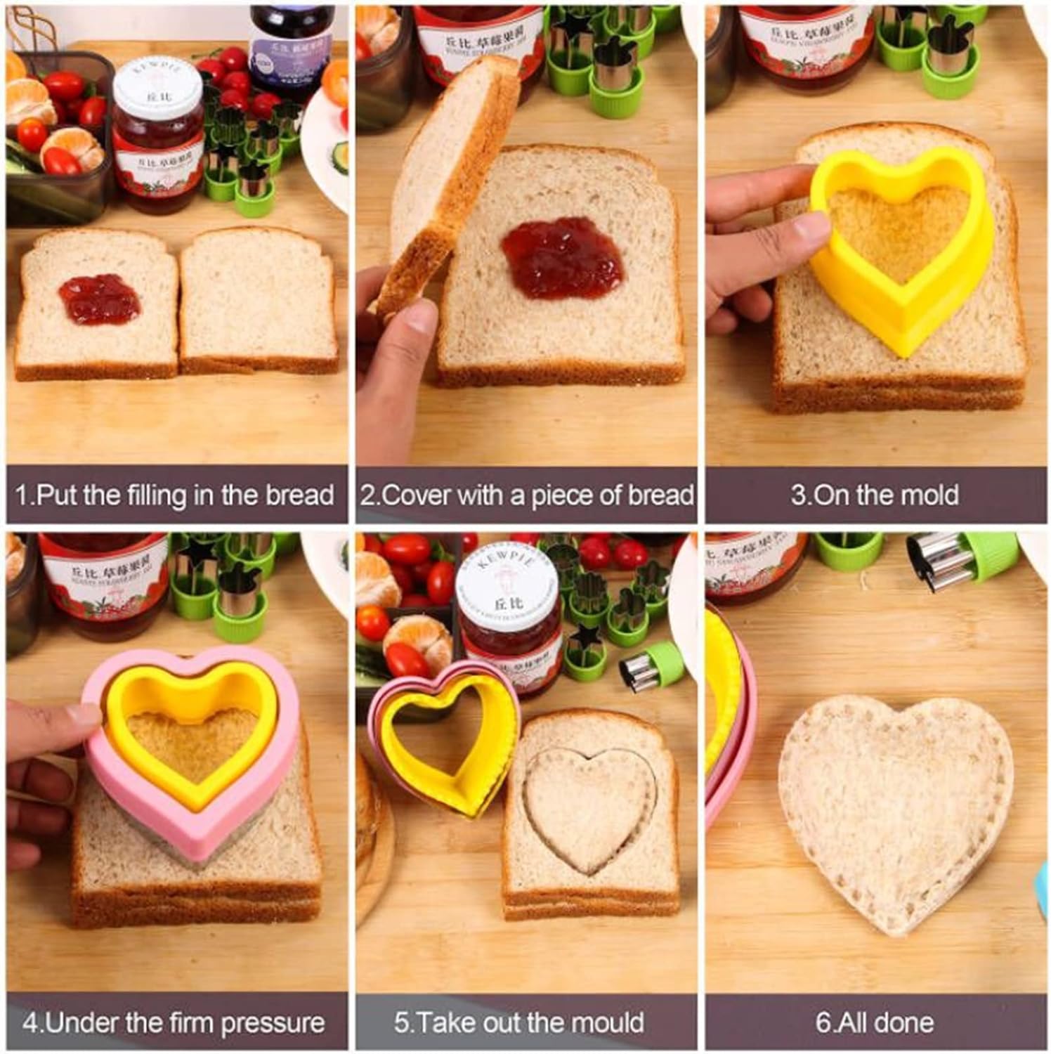 2 piezas de cortadores de sándwiches y sellador, y 5 cortadores de fruta y verdura
