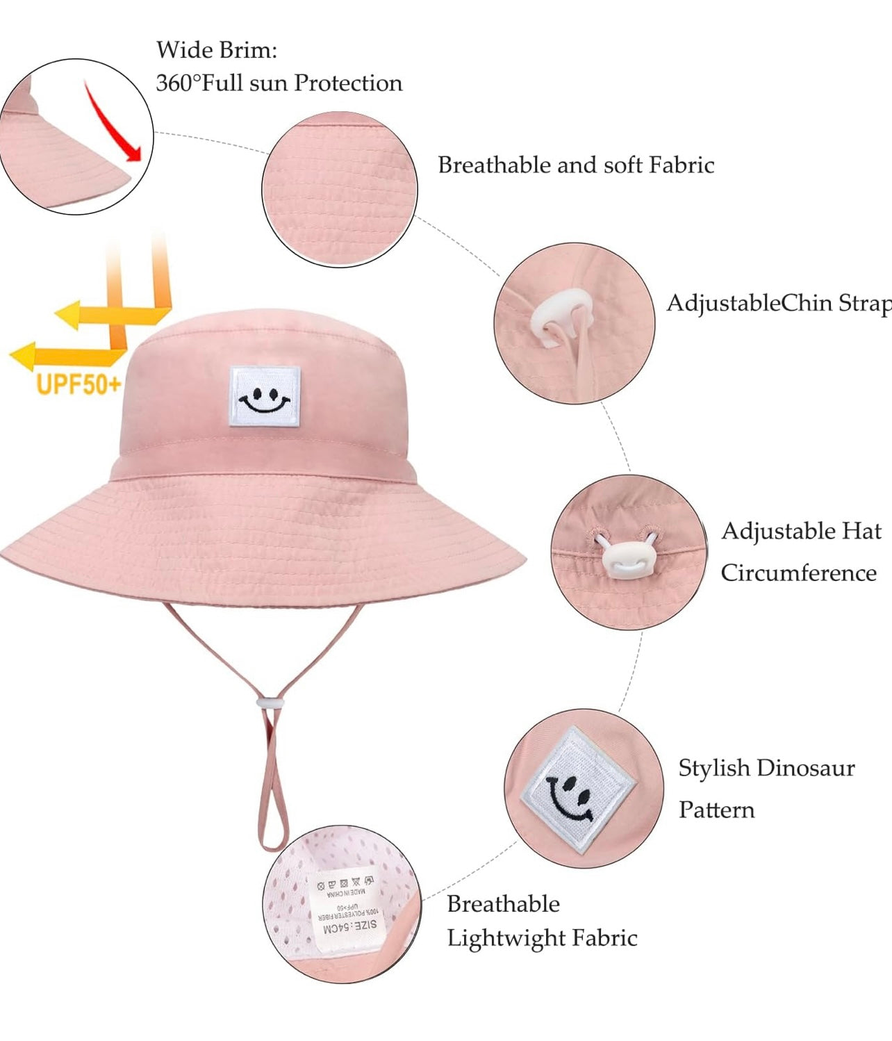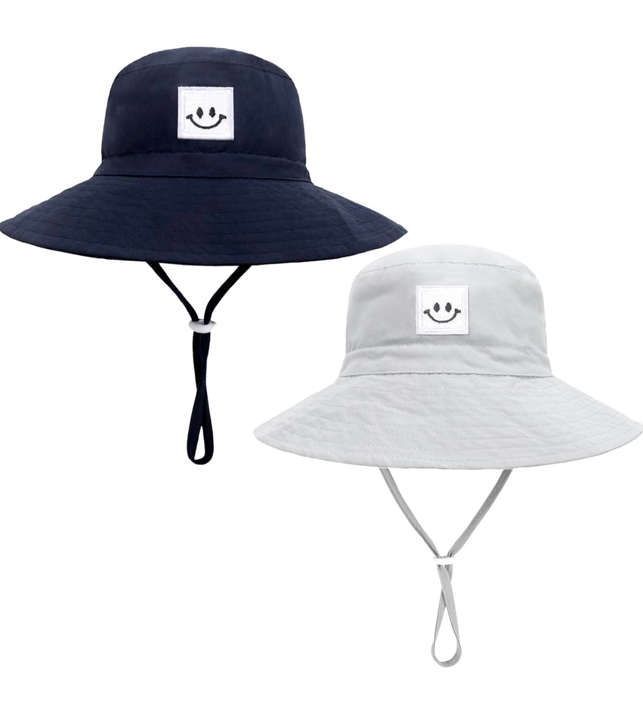 2 Sombreros de sol para bebé, cara sonriente UPF 50+, 2-6 años