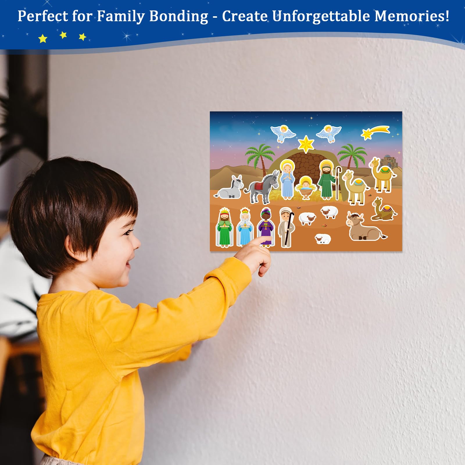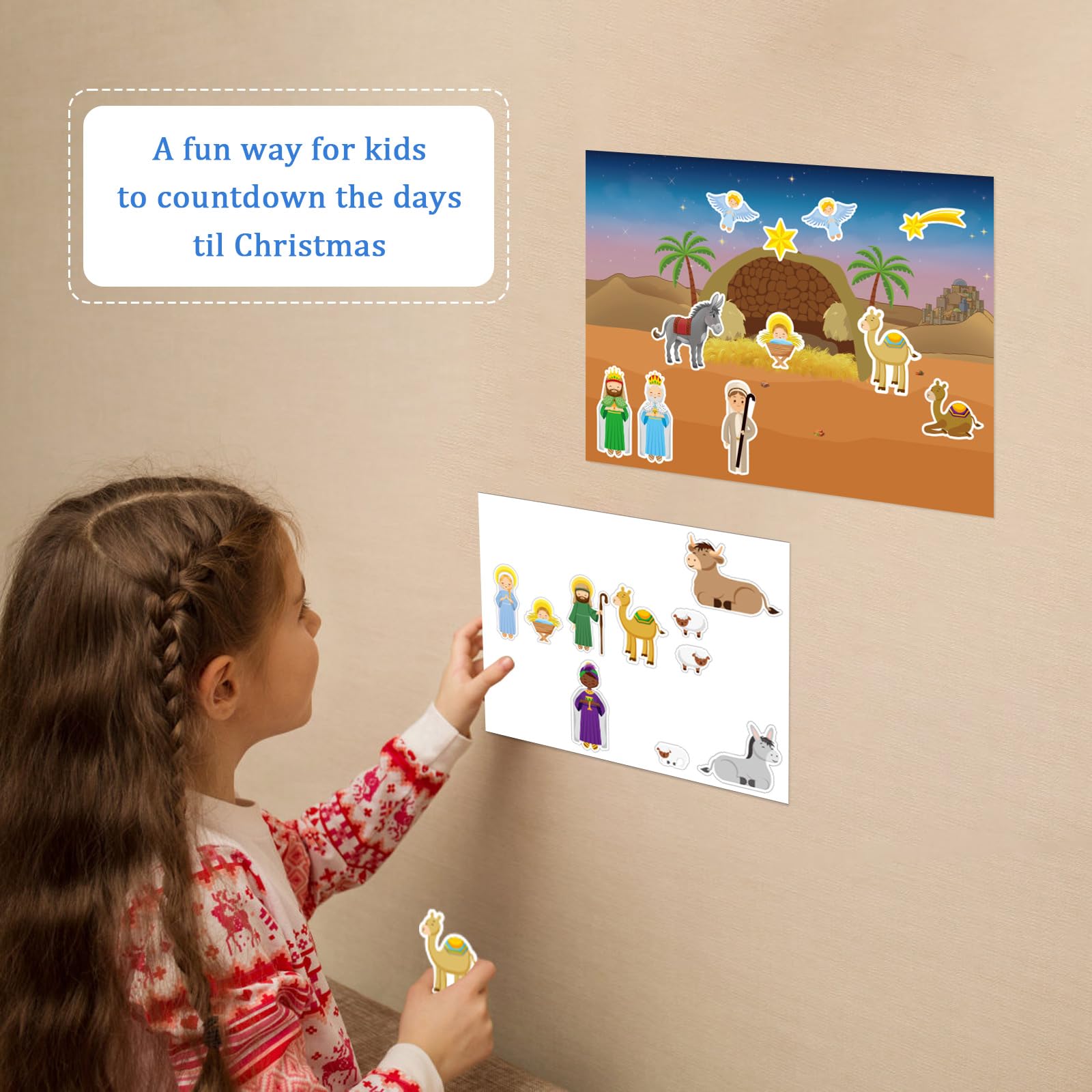 - Crea una atractiva escena de pesebre: este juego incluye 12 calcomanías de pesebre y 12 cartones de póster, perfectos para que los niños hagan un belén. Mide 10.83 x 7.87 pulgadas, estas calcomanías de Navidad permiten a los niños dar vida a la historia del nacimiento de Jesús de una manera divertida e interactiva.
