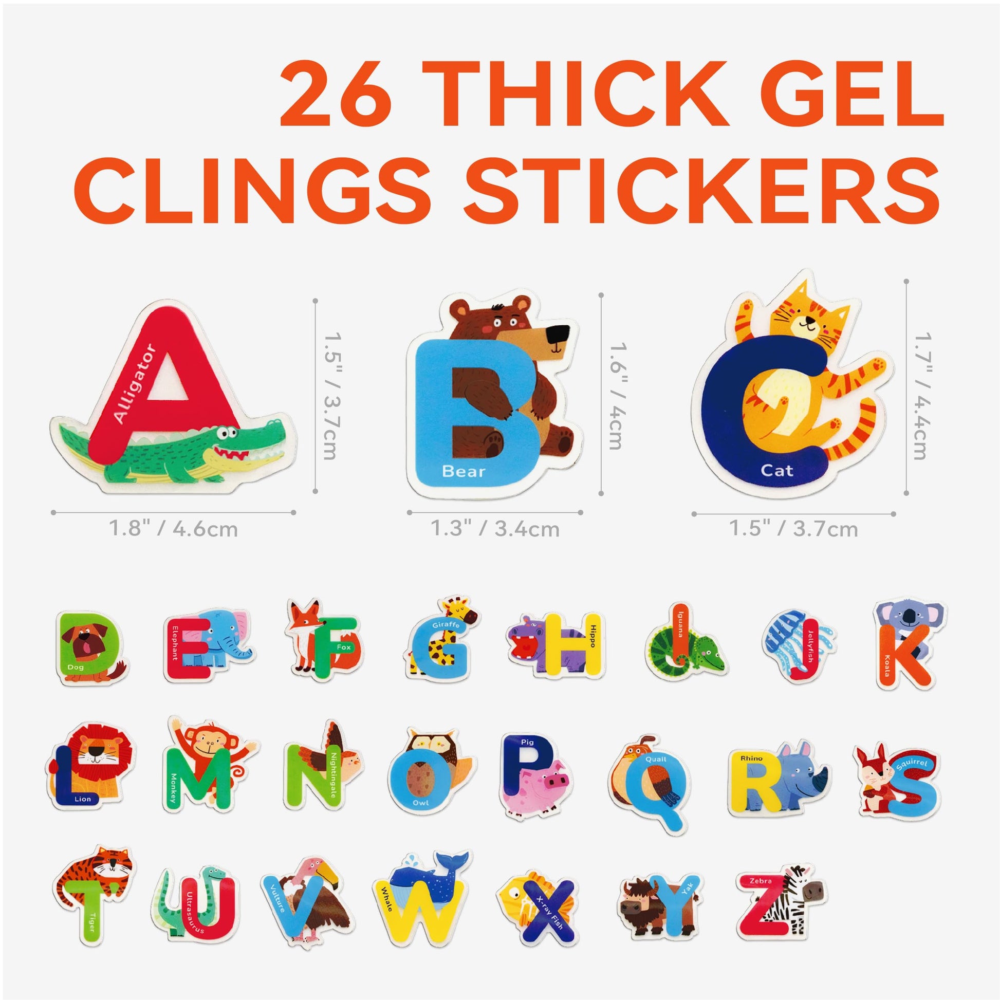 - Lo que obtendrás: viene con 26 calcomanías de gel en diseños en forma de letra. Adopta la forma de letra individual con el animal y la palabra correspondientes, diseñado para combinar la educación con el entretenimiento, haciendo que el aprendizaje sea divertido y atractivo para niños de todas las edades.