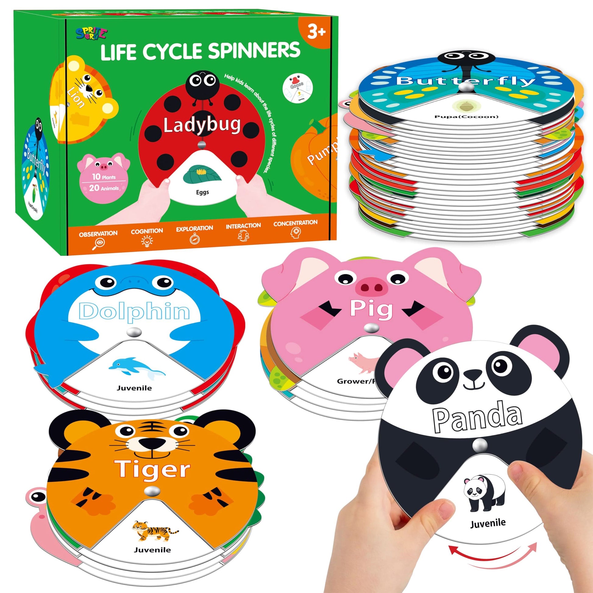 30 piezas de hilanderos de ciclo de vida, 20 animales y 10 plantas