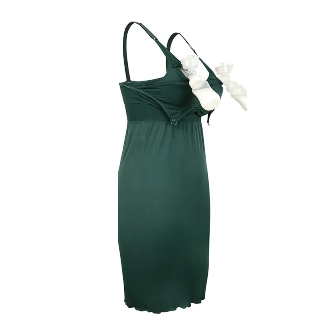 4HOW Vestido de maternidad camisón de lactancia con ribete de encaje y correa ajustable, talla M