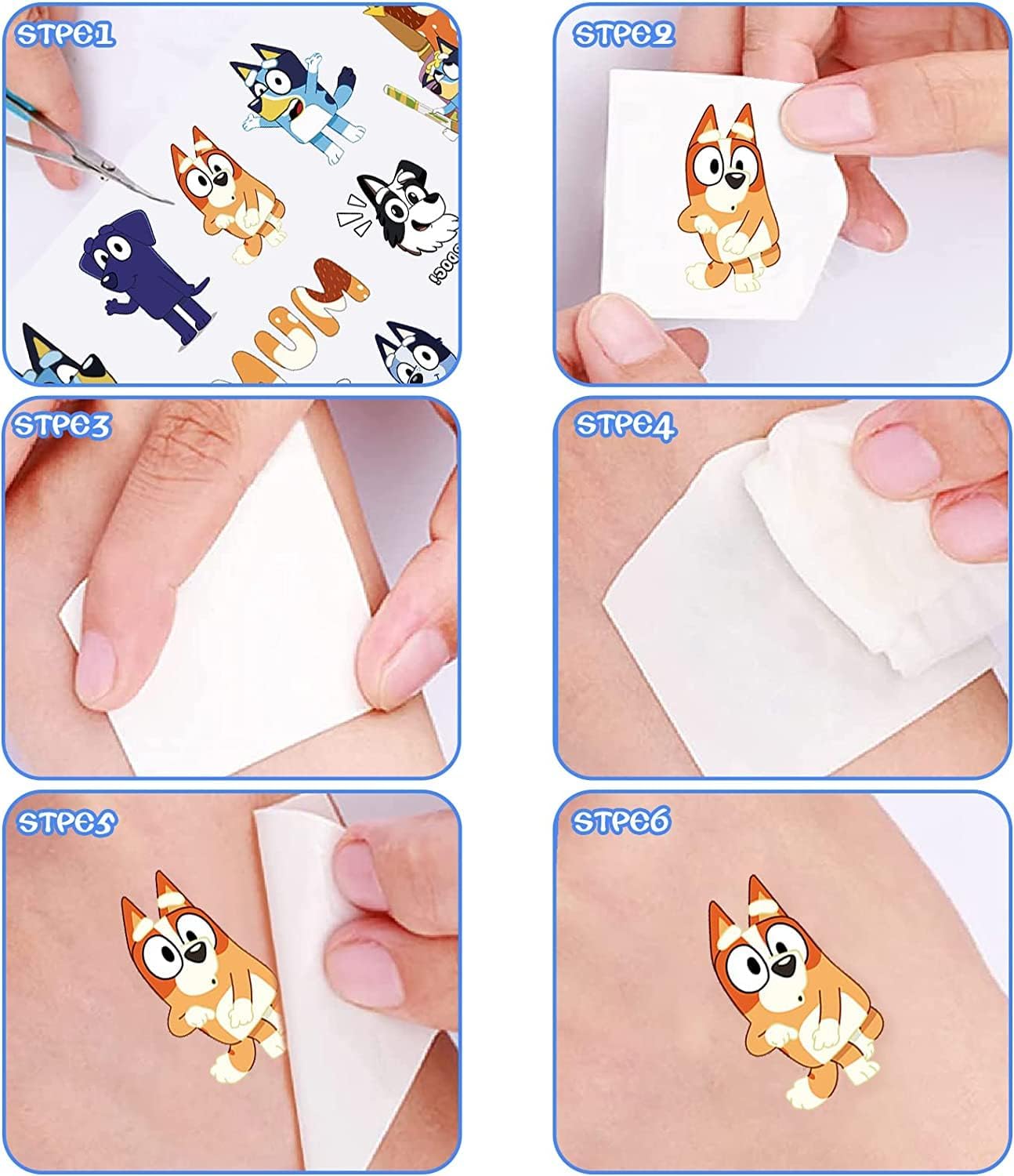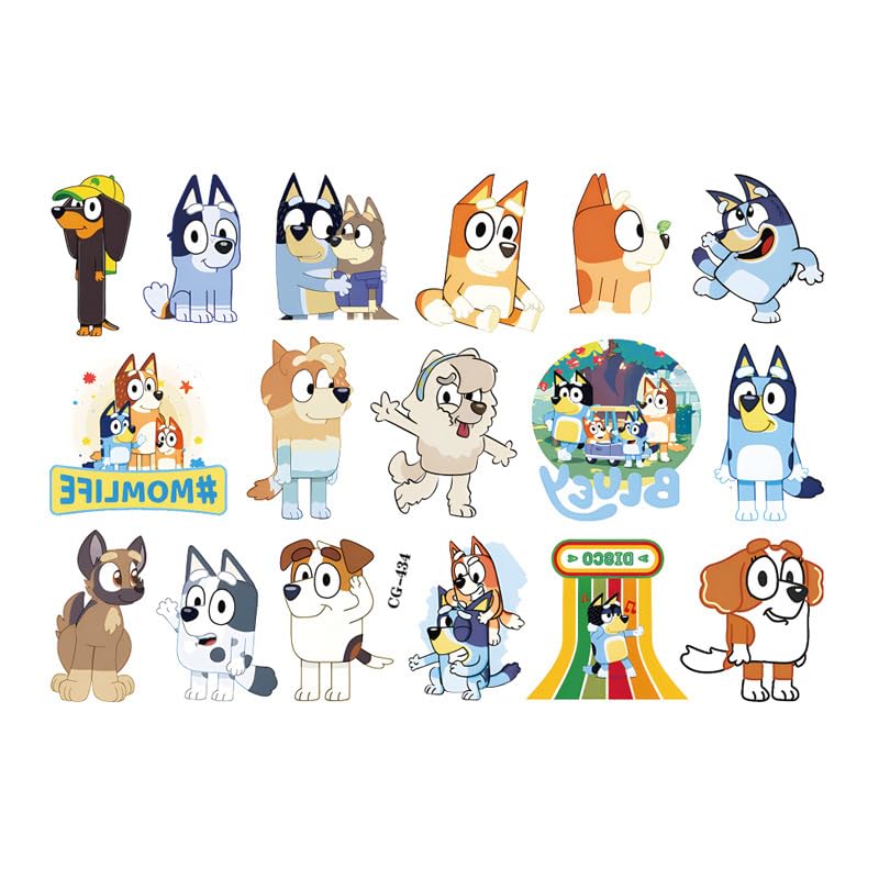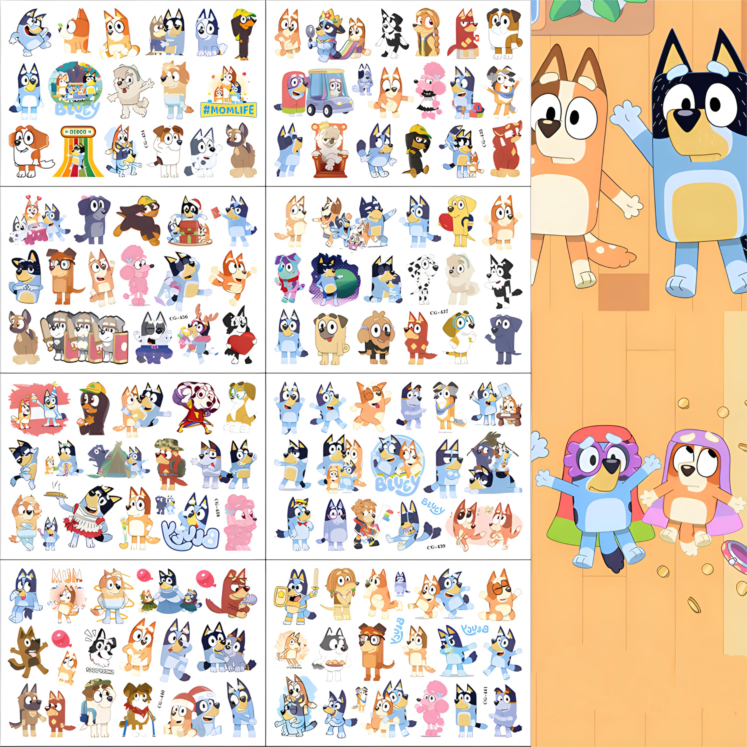 8 hojas de calcomanías temporales de tatuaje de Bluey