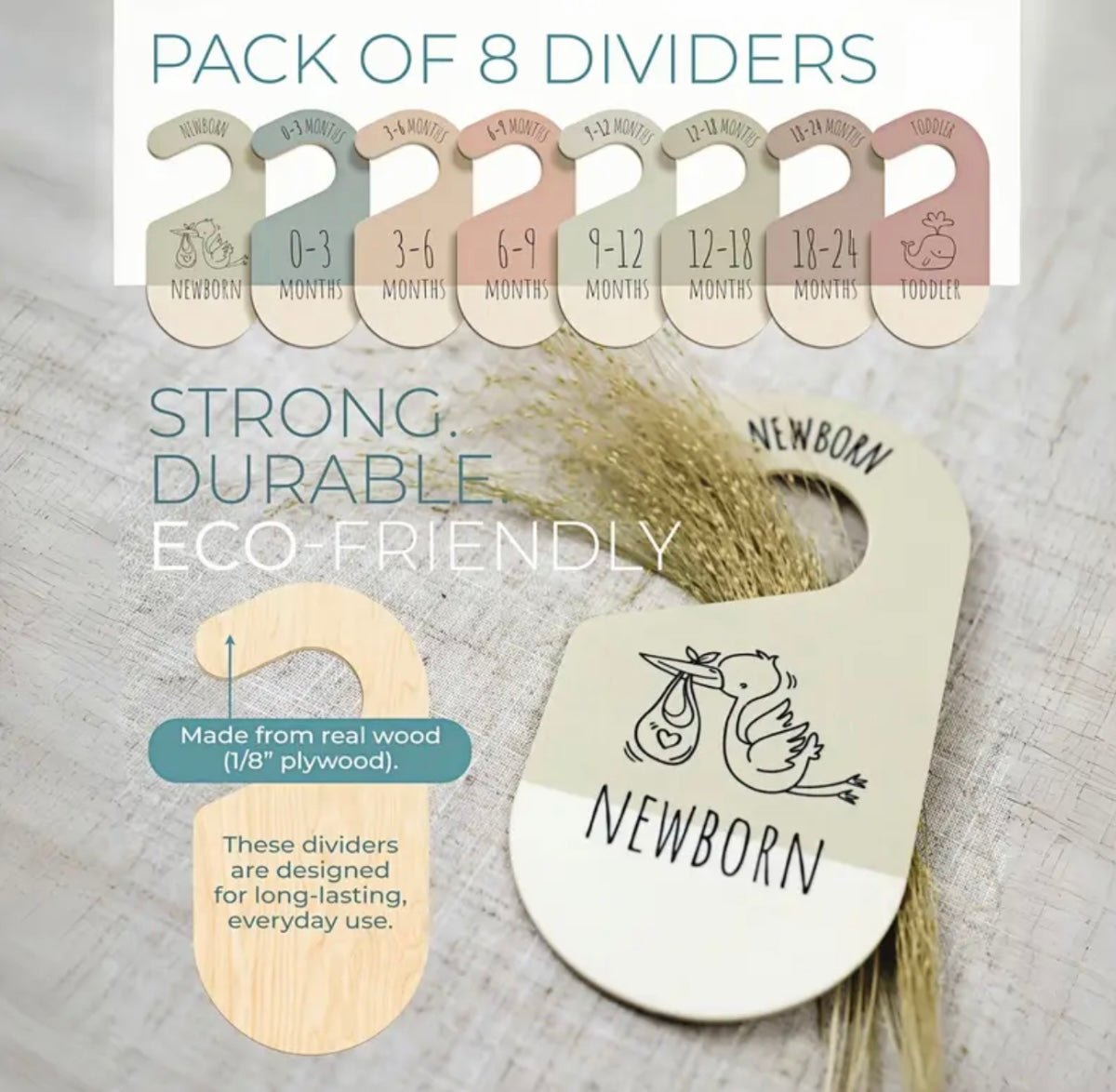 8 piezas de juego de separadores de armario de madera linda