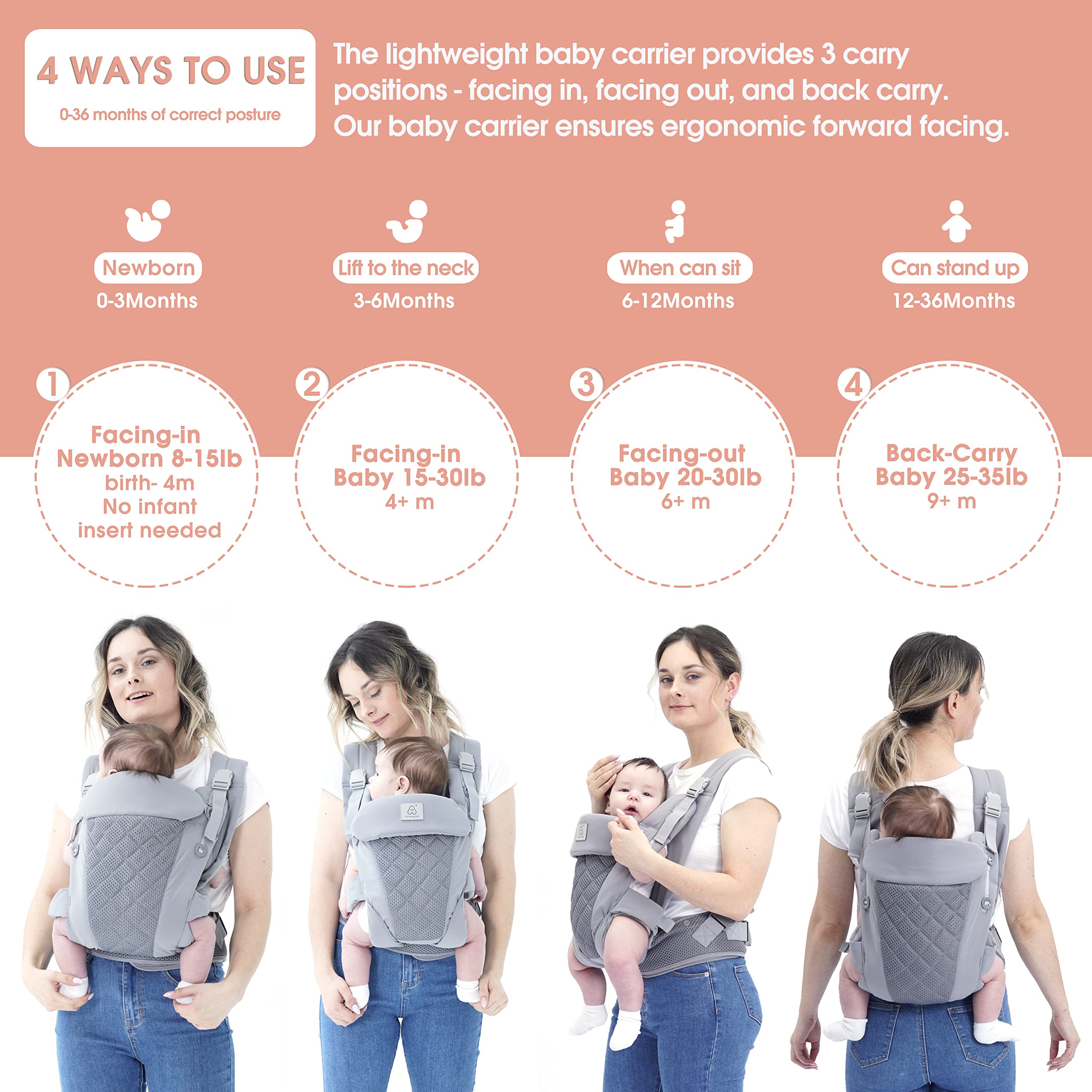 ACRABROS - Portabebés para recién nacidos a niños pequeños