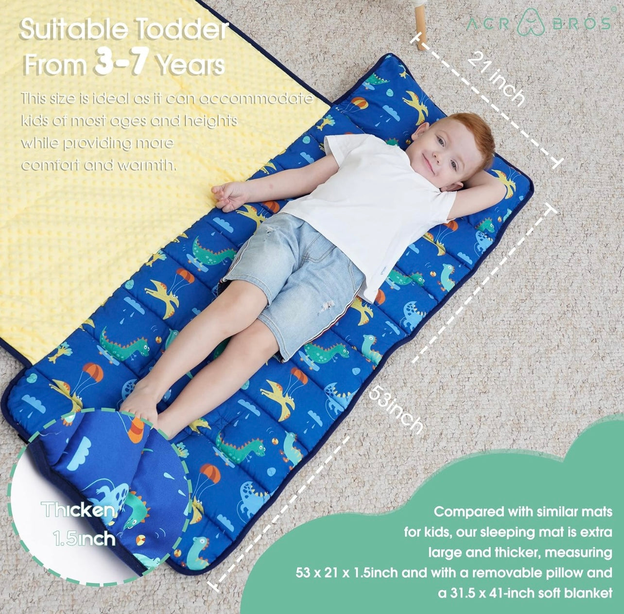 ACRABROS Tapete para la siesta con almohada y manta para niños pequeños