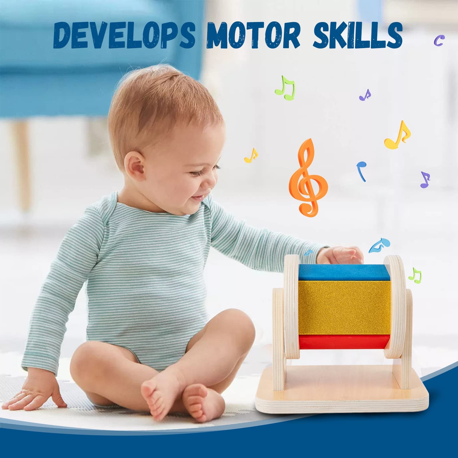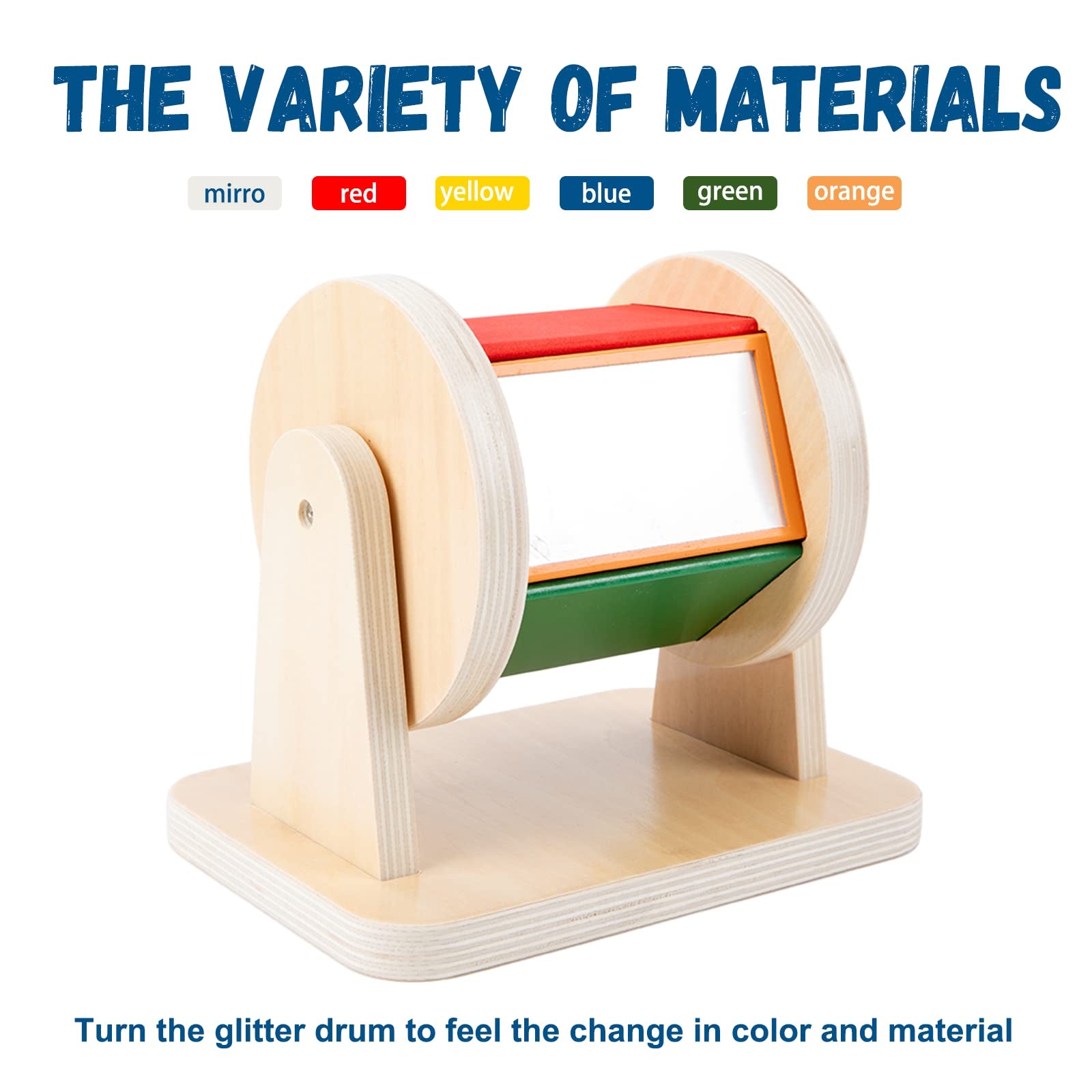 Adena Montessori Tambor giratorio de tamaño mediano con múltiples materiales