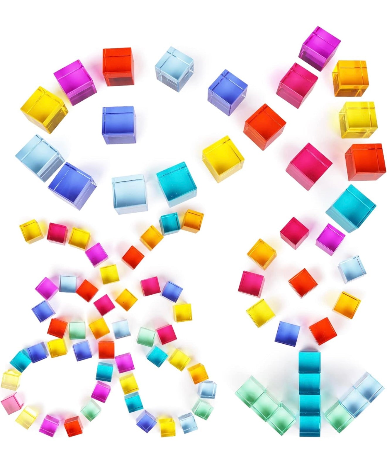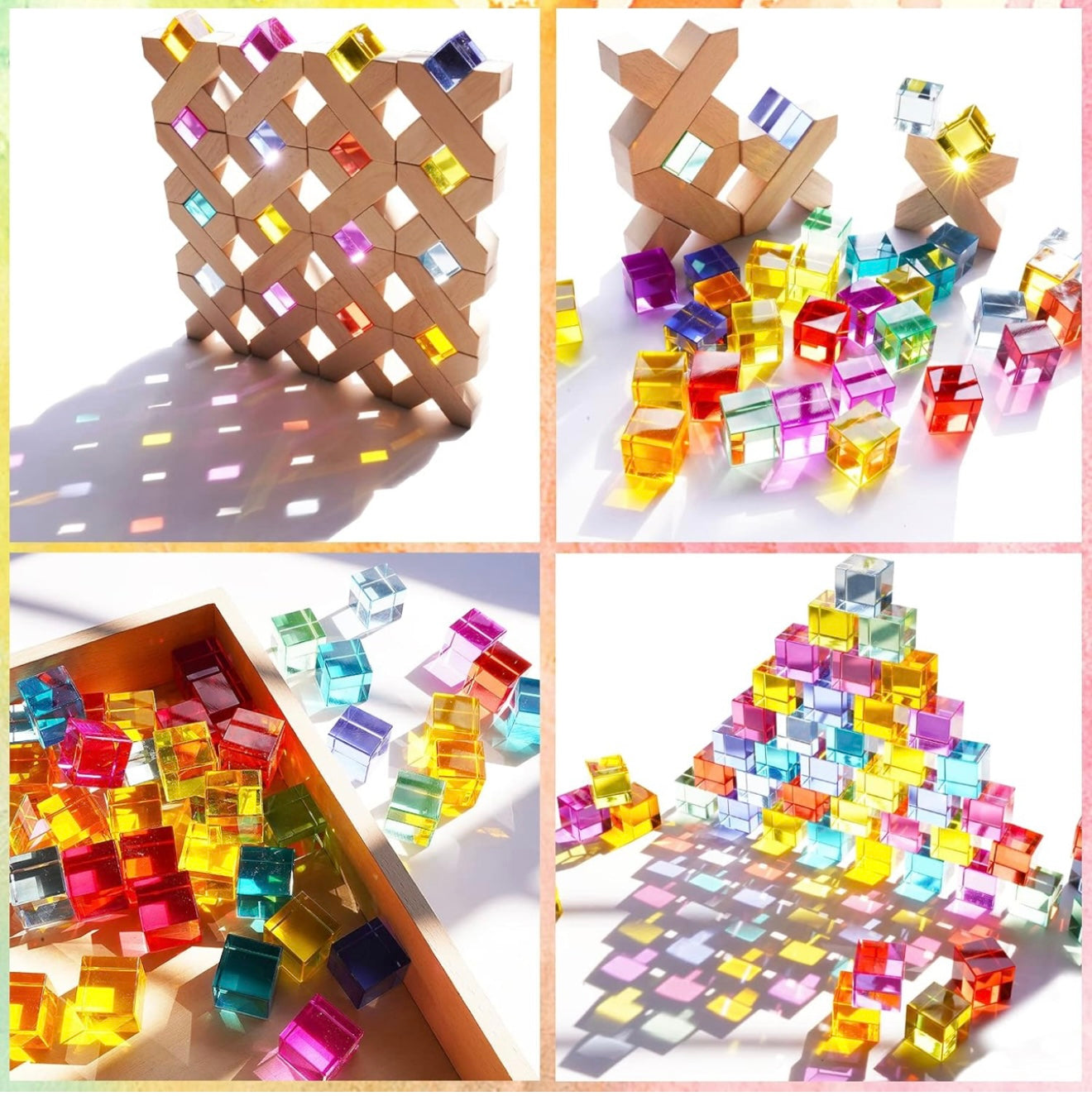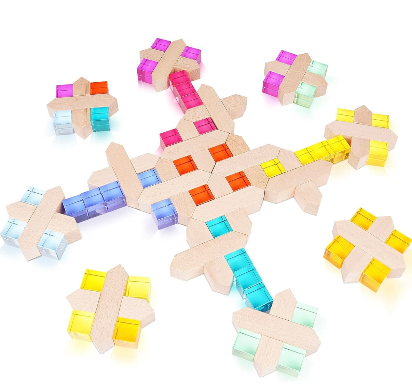 Agirlgle Bloques de construcción de madera arco iris, cubo de bloques apilables de gemas
