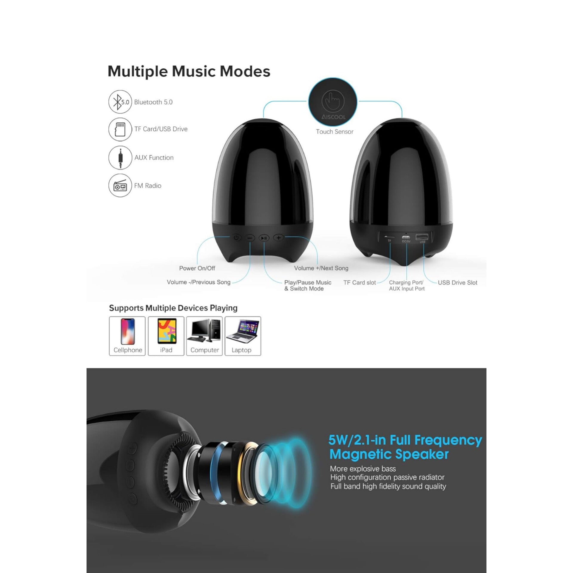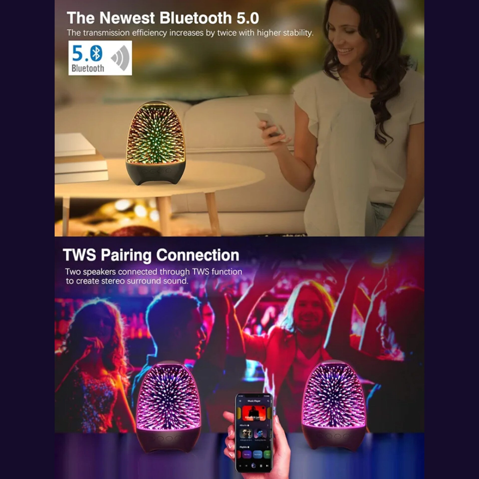【ALTA CAPACIDAD Y FÁCIL OPERACIÓN】: Con 1200 mAh de alta capacidad, el altavoz de luz nocturna puede proporcionar de 5 a 8 horas de reproducción e iluminación después de 2 a 3 horas de carga rápida, según el modo que utilice. Además, admite la reproducción mientras se carga USB. Puede disfrutar fácilmente de varias luces de colores y opciones de reproducción de música simplemente operando el botón de control táctil y los 4 botones de audio, o puede consultar el manual de usuario específico para conocer las operaciones.