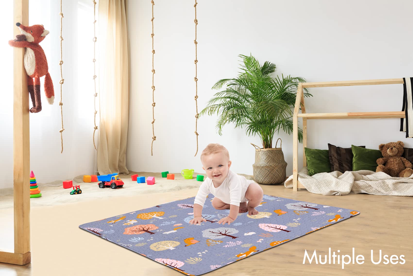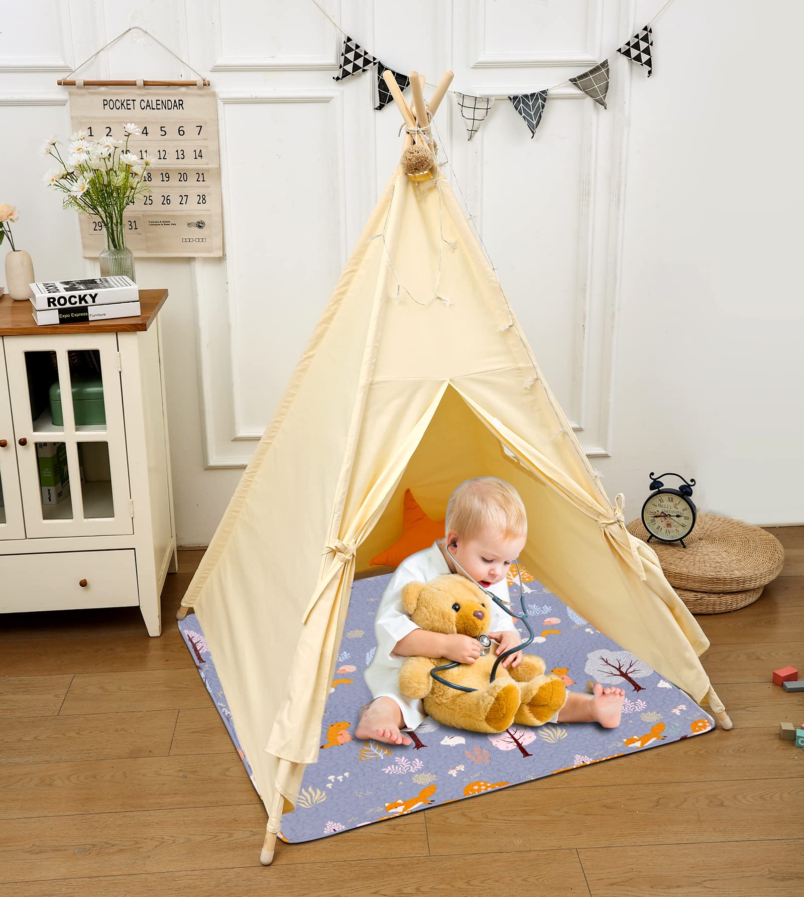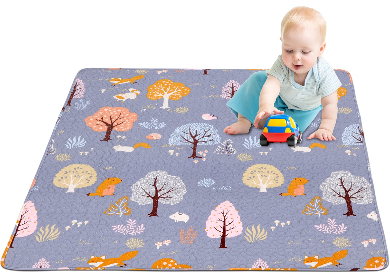 Alfombra de juego lavable para bebé, portátil, de 63 x 43 pulgadas