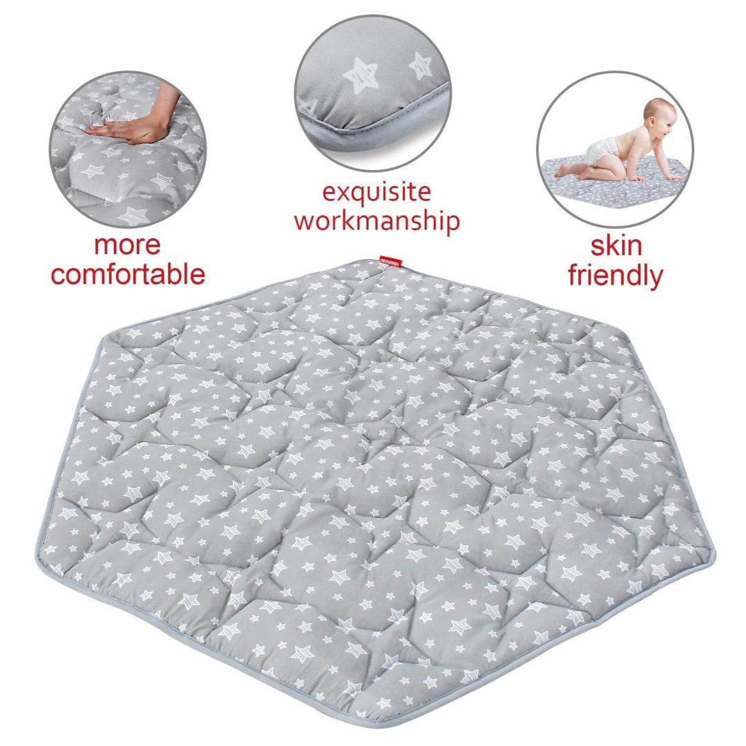 Acolchado y suave: 100 % poliéster suave y relleno de primera calidad. Multiusos: mide 52 x 45 pulgadas, perfecto para regalo de patio de juego portátil, corralito Summer Pop 'n Play, corralito Graco Pack 'n Play LiteTraveler Playard, corralito Dream On Me Onyx, etc. También se puede utilizar en tiendas de juegos para niños, sala de estar, pasillo, dormitorio, mesita de noche, estudio y otras áreas recreativas.
