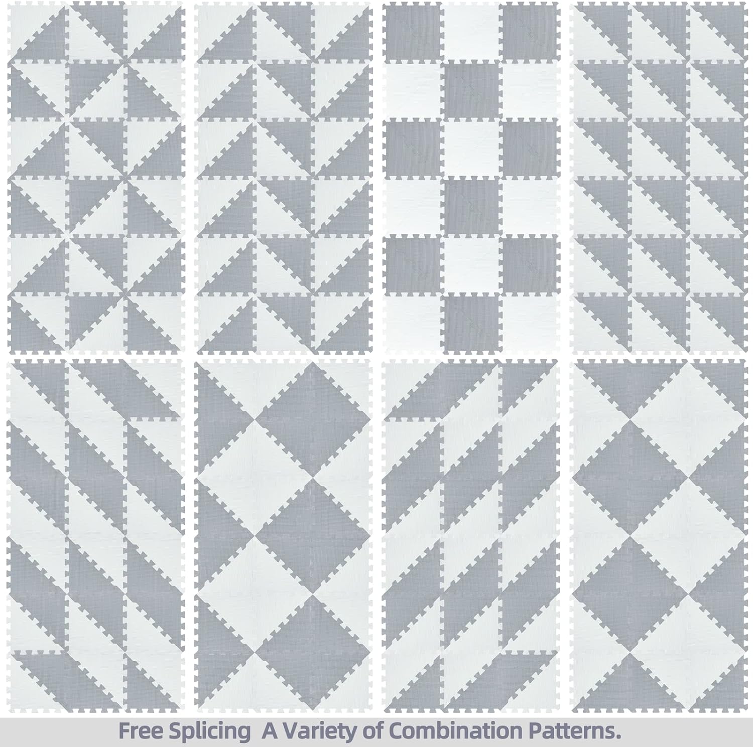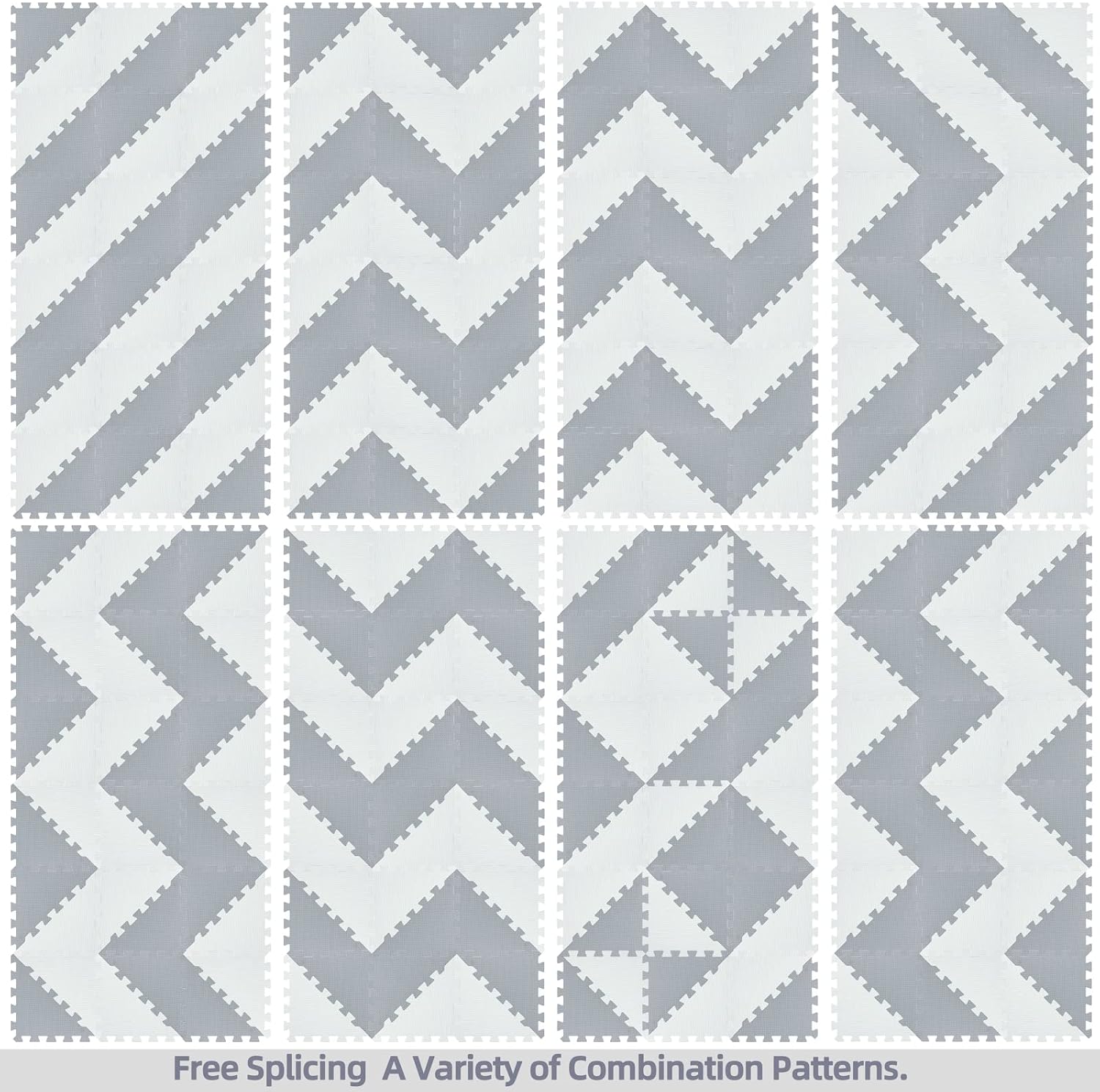 Color del tapete protector para piso: blanco, gris claro. El diseño triangular se puede coser en una variedad de patrones diferentes.