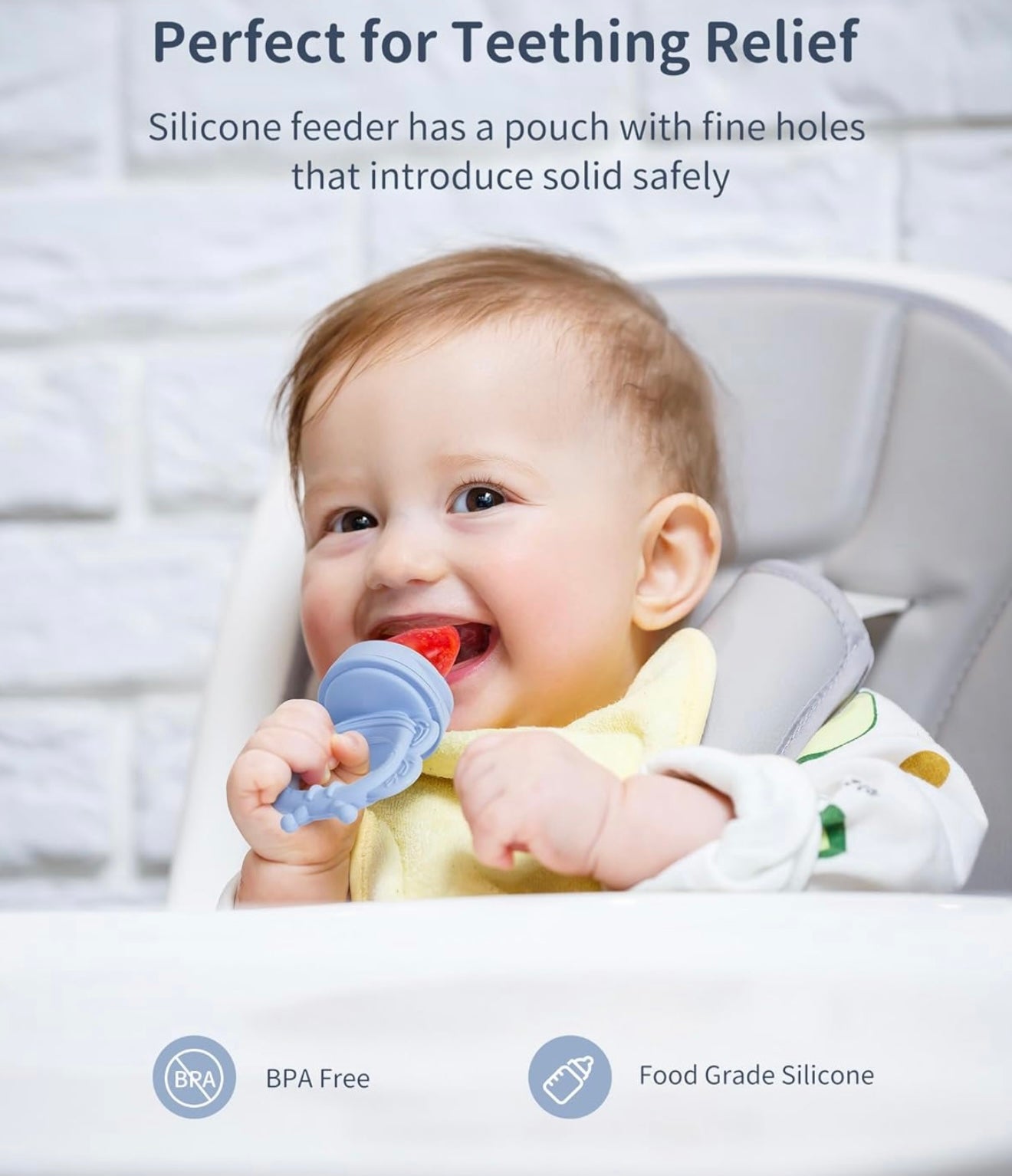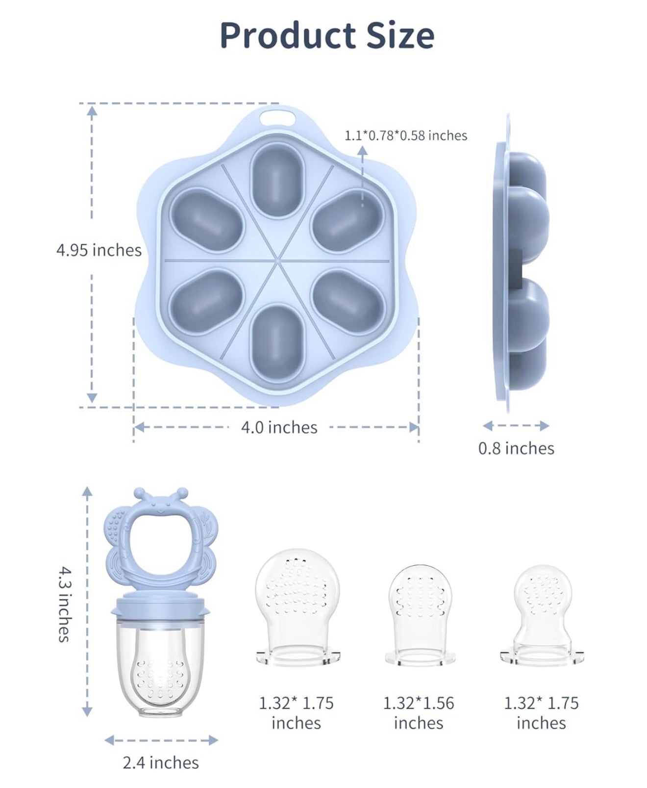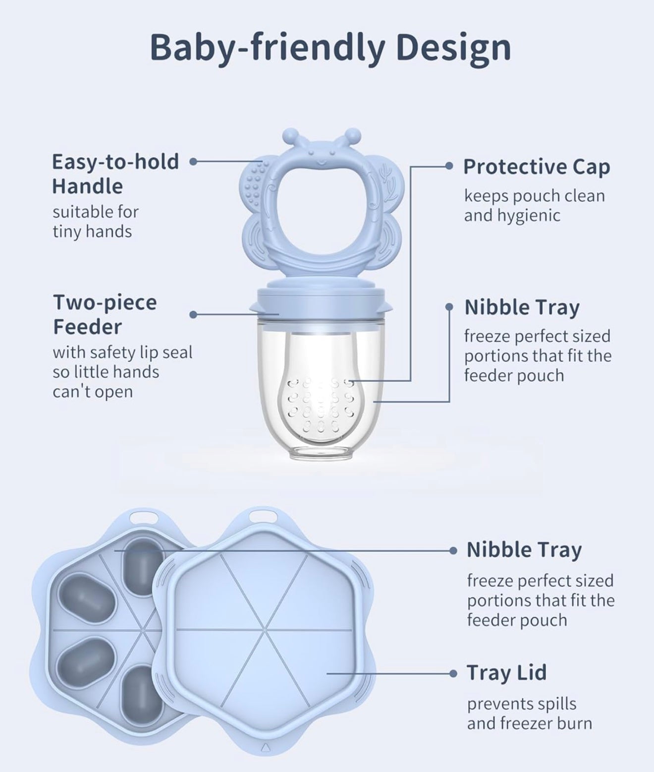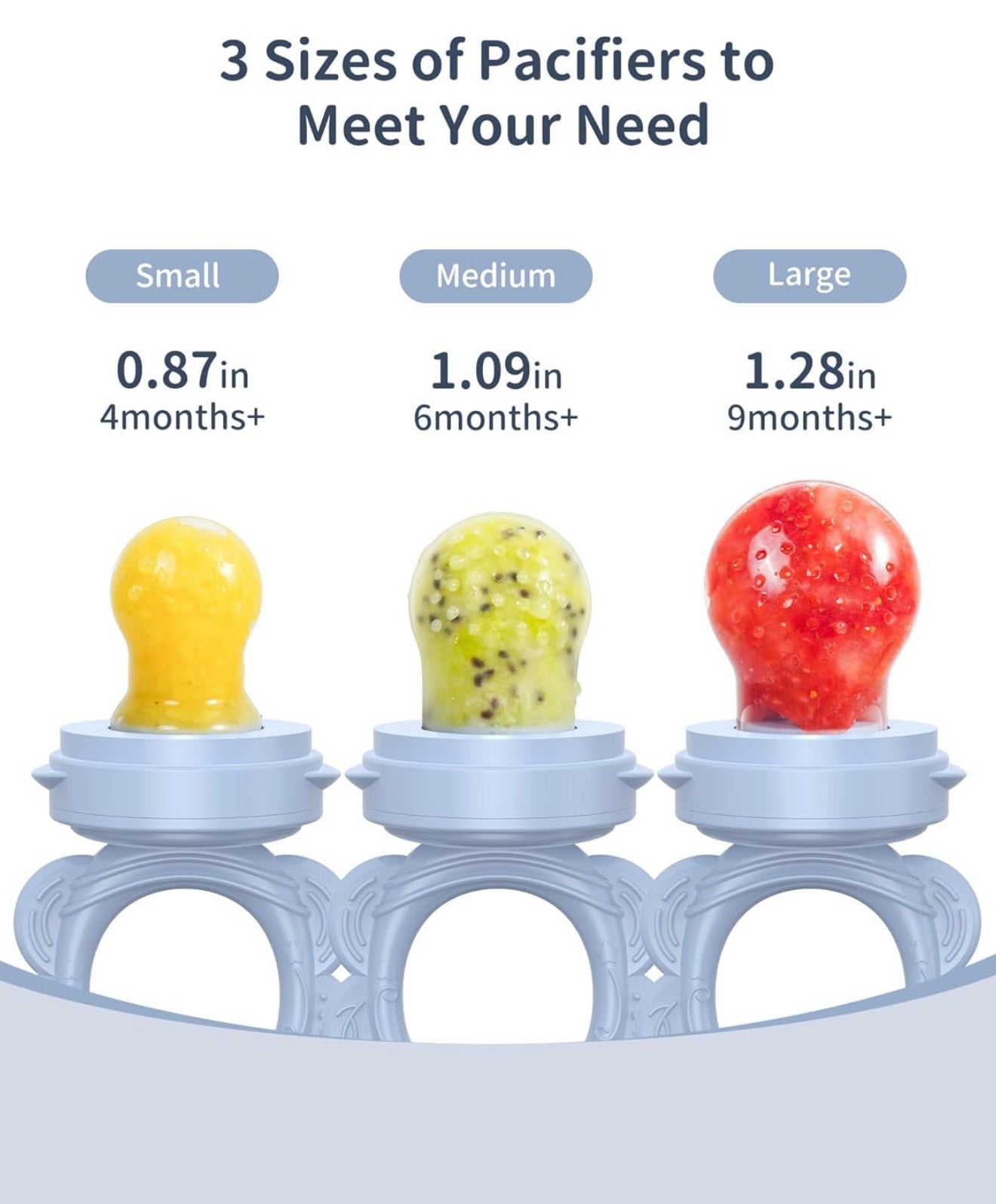 Alimentador de silicona para frutas para bebés (paquete de 2) con bandeja para congelador