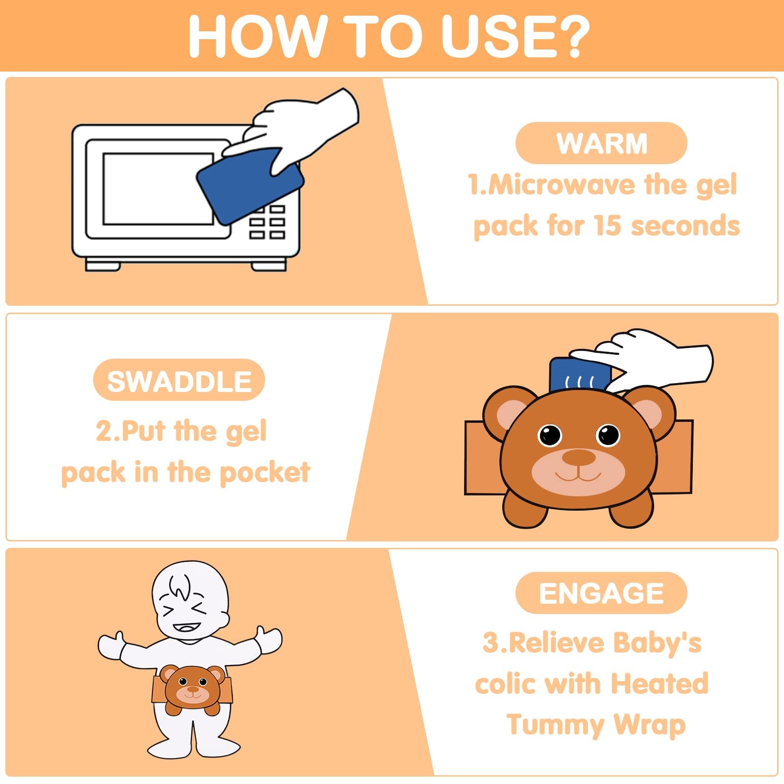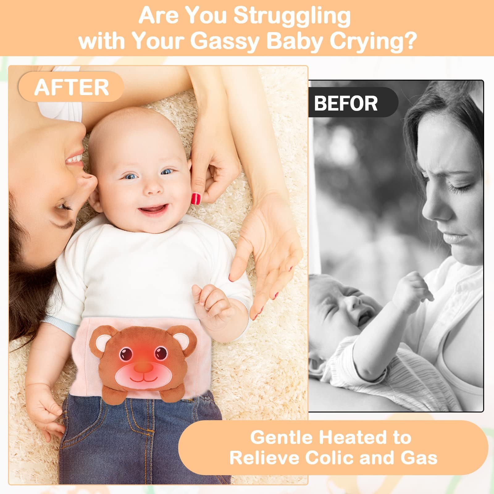 Alivio de cólicos, gases y malestar estomacal para bebés, almohadilla térmica Heigoeost