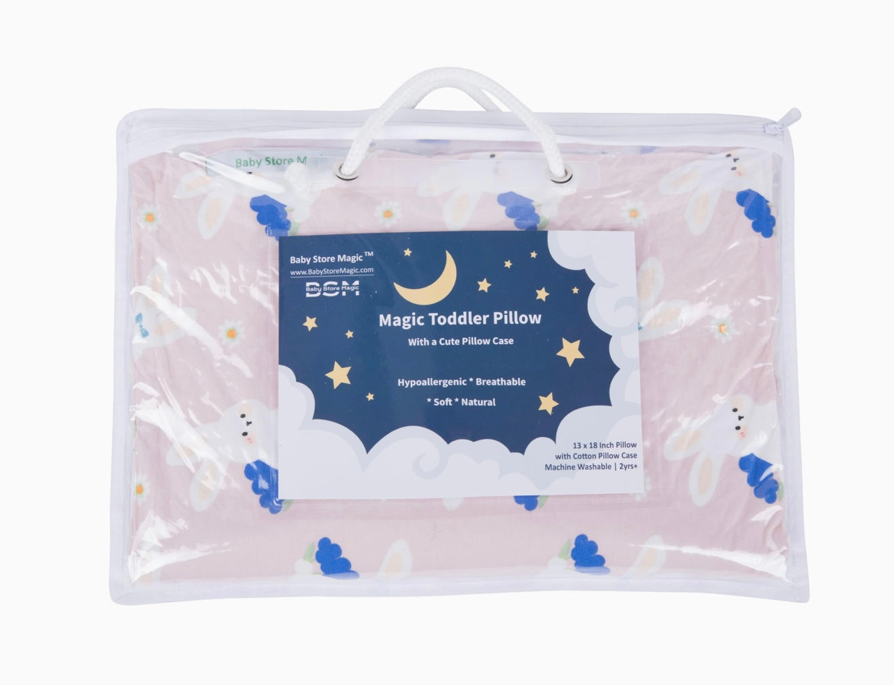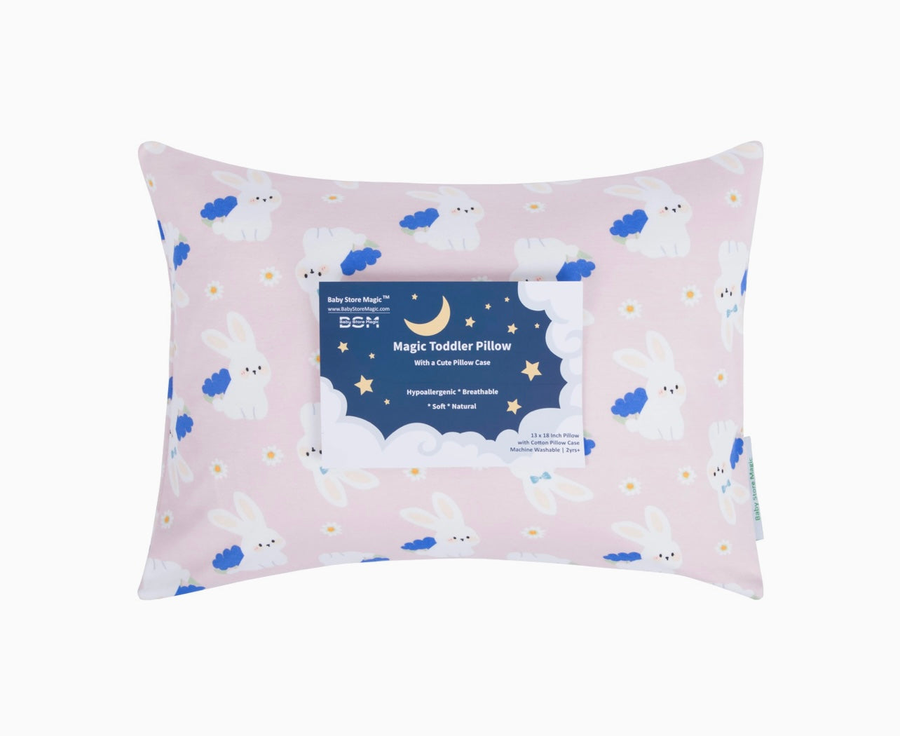Almohada mágica para niños pequeños con linda funda de almohada, hipoalergénica, transpirable, suave, natural, 13 x 18 pulgadas