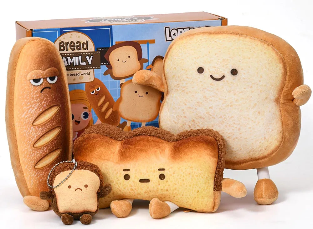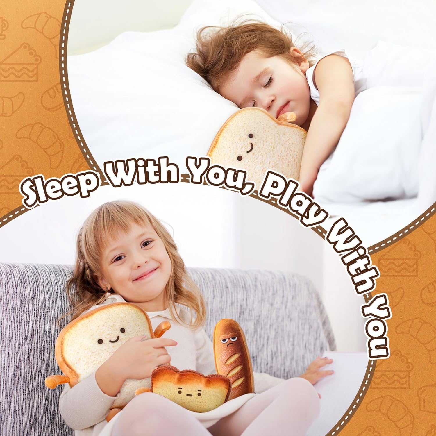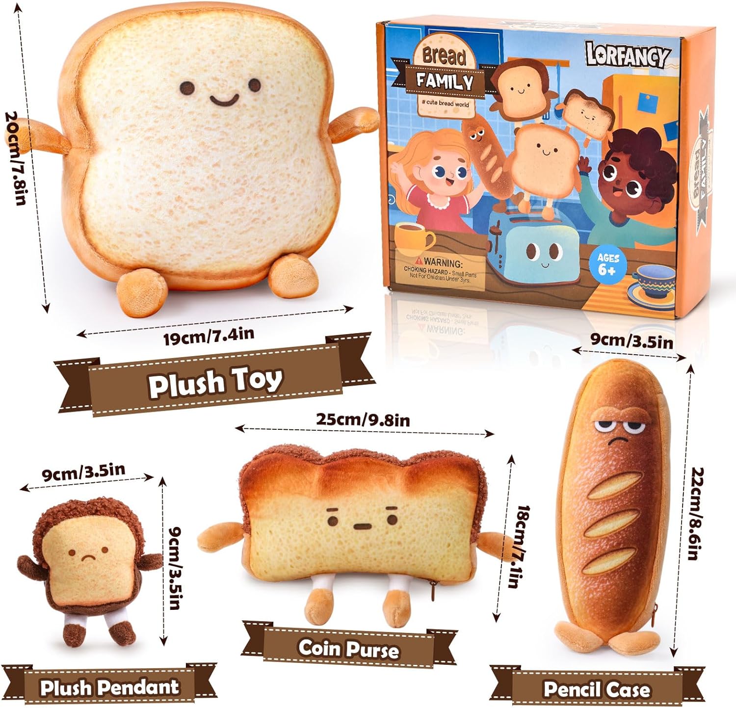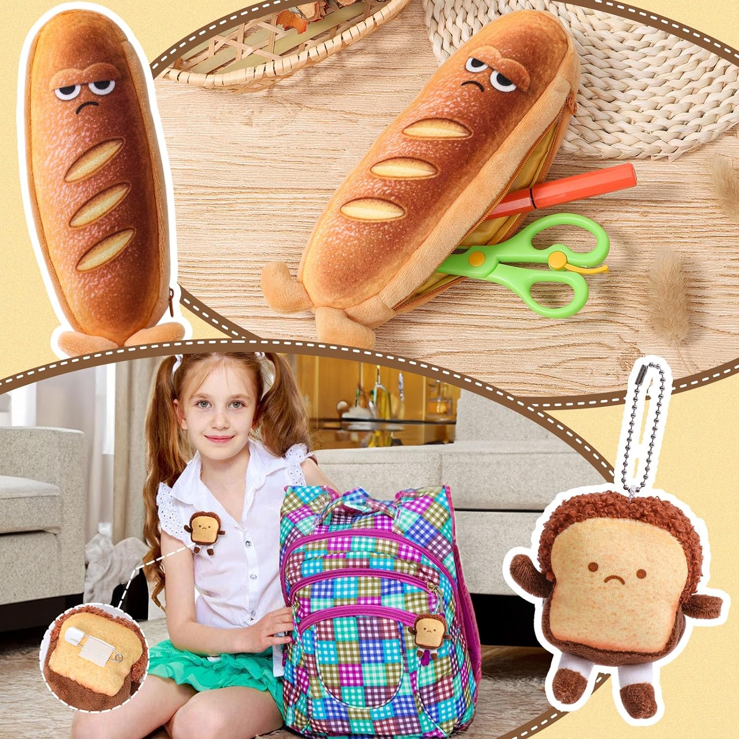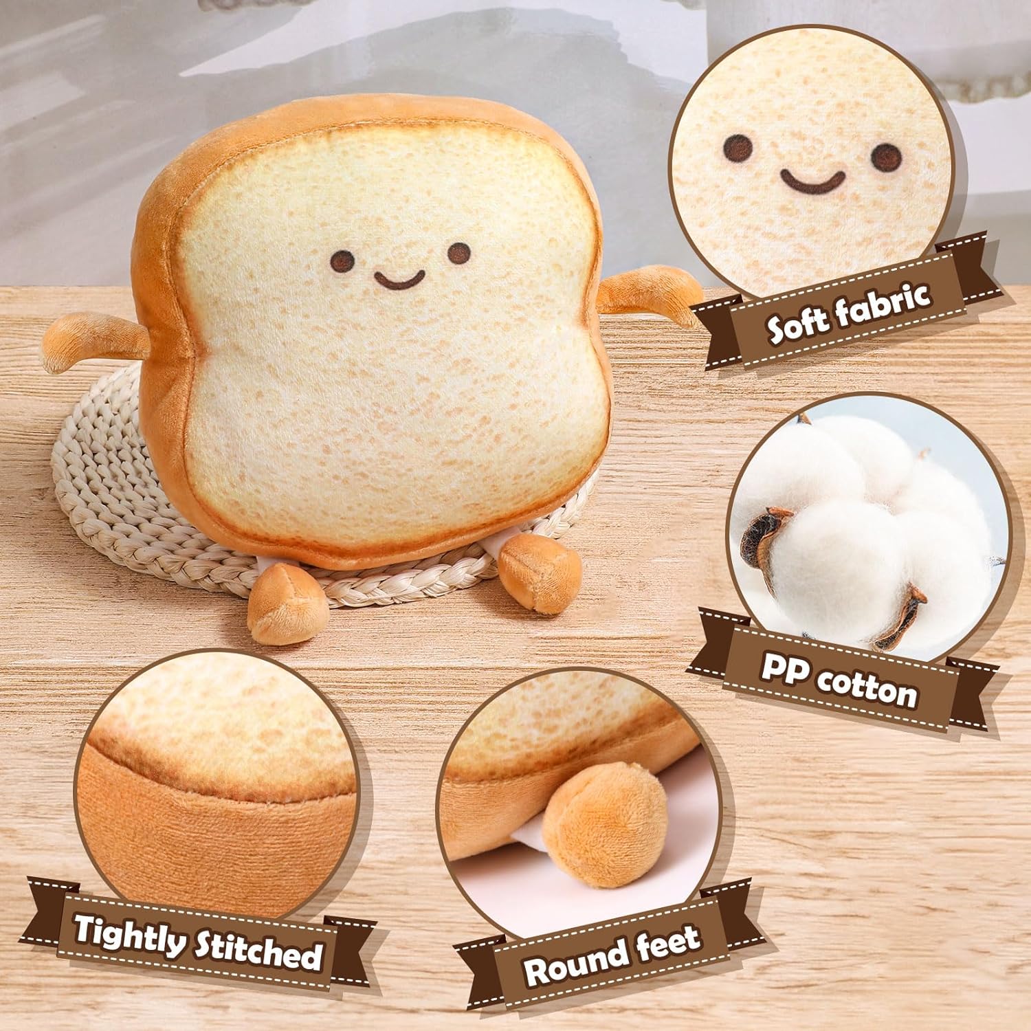 Material seguro y de alta calidad: los juguetes para pan están hechos de felpa corta y poliéster, y la almohada y el pequeño colgador de pan están rellenos de algodón PP, suave y cómodo al tacto, con buenos puntos de costura y apariencia delicada. Cada juguete de pan tiene una expresión diferente, lo que aporta diferentes novedades a tus hijos y los hace felices.