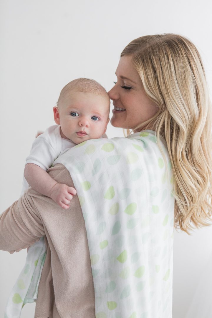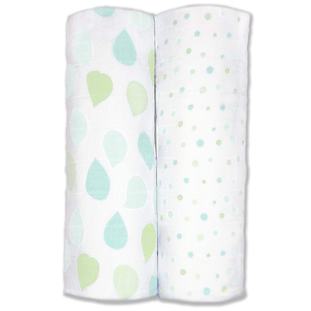 Amazing Baby Juego de 2 mantas sedosas de muselina para envolver la seda, viscosa de bambú, hojas y puntos, cristal marino