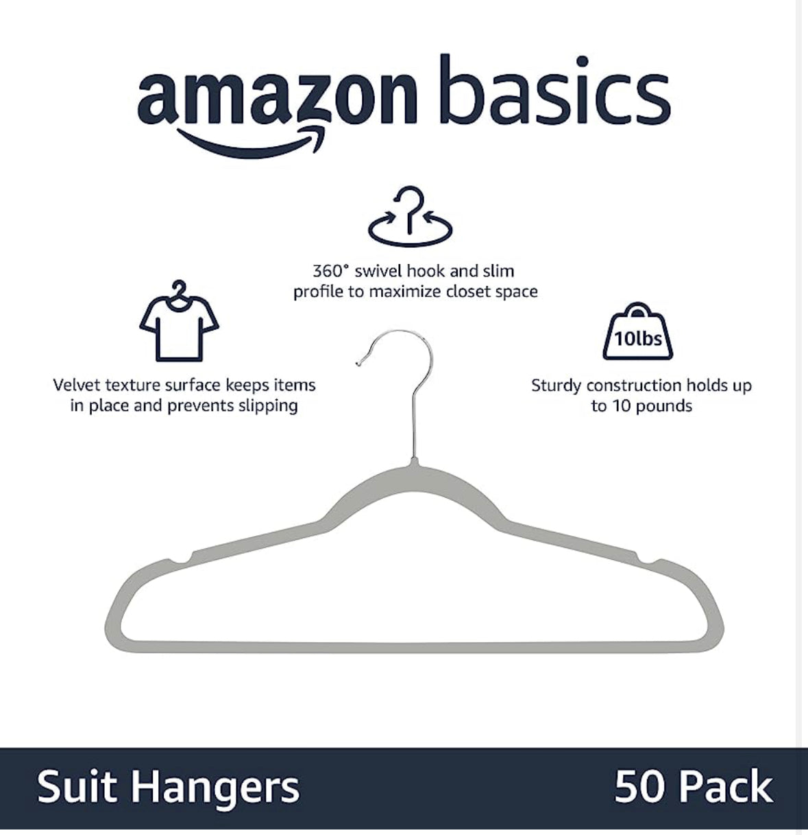 Amazon Basics Perchas de ropa de traje delgadas, aterciopeladas, 15 ganchos