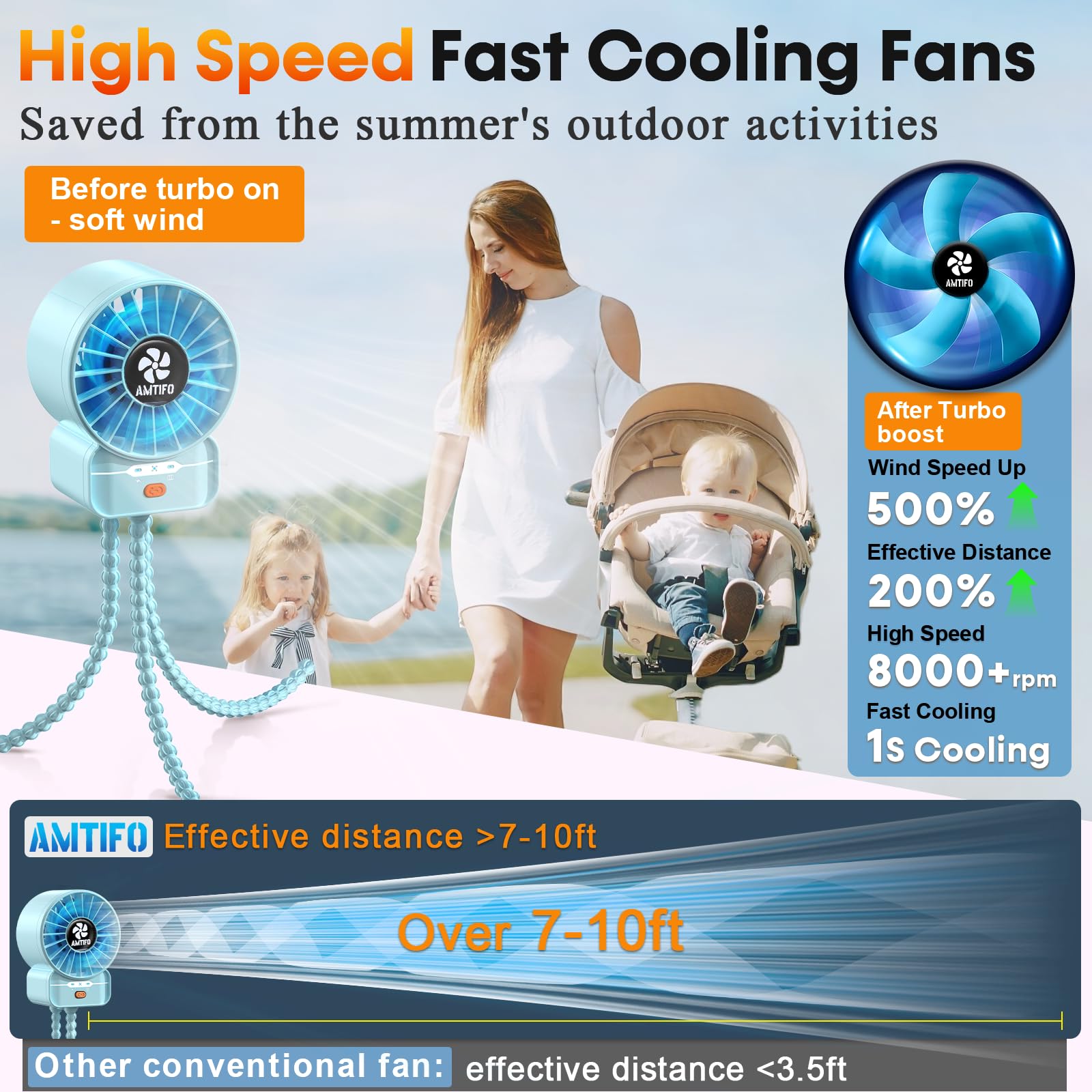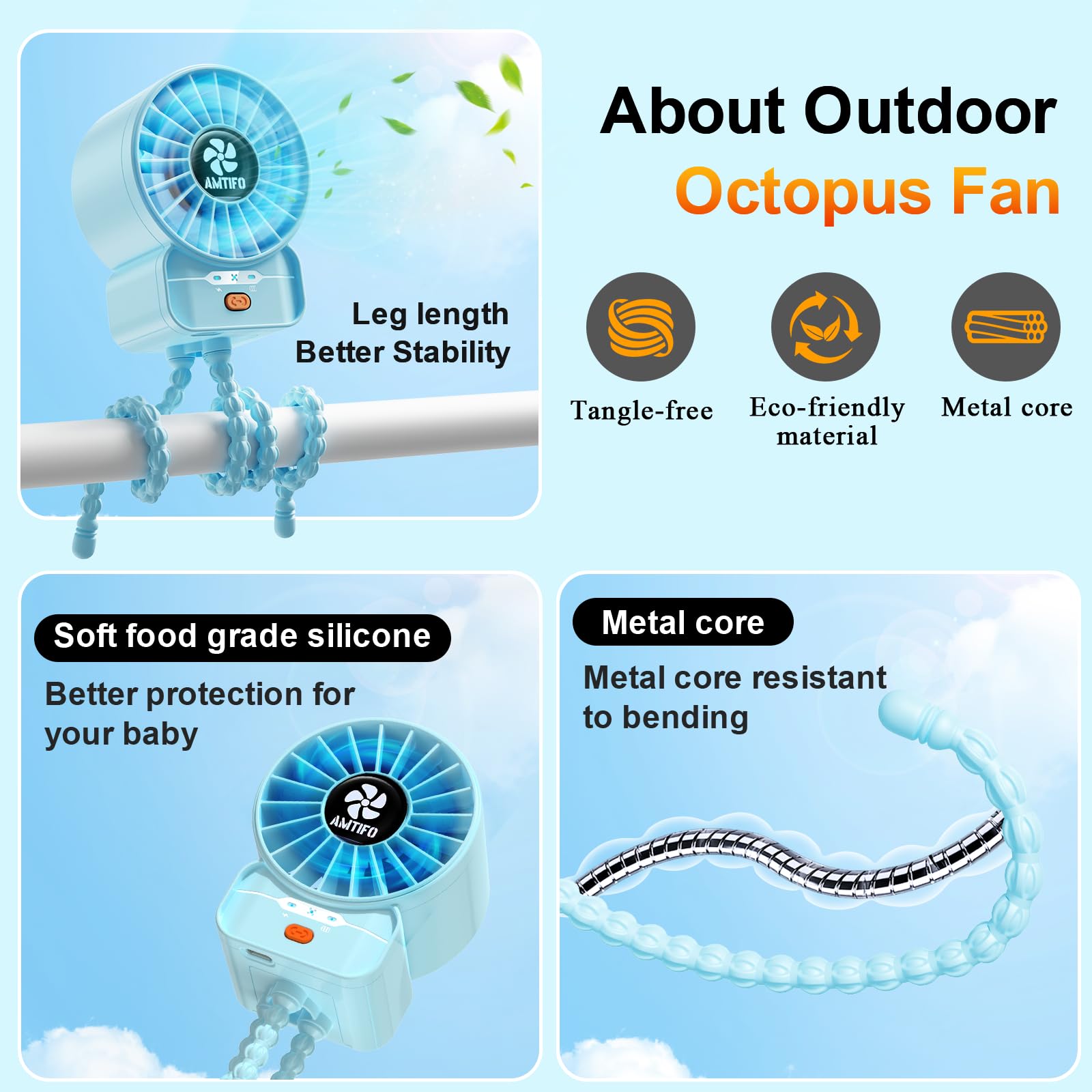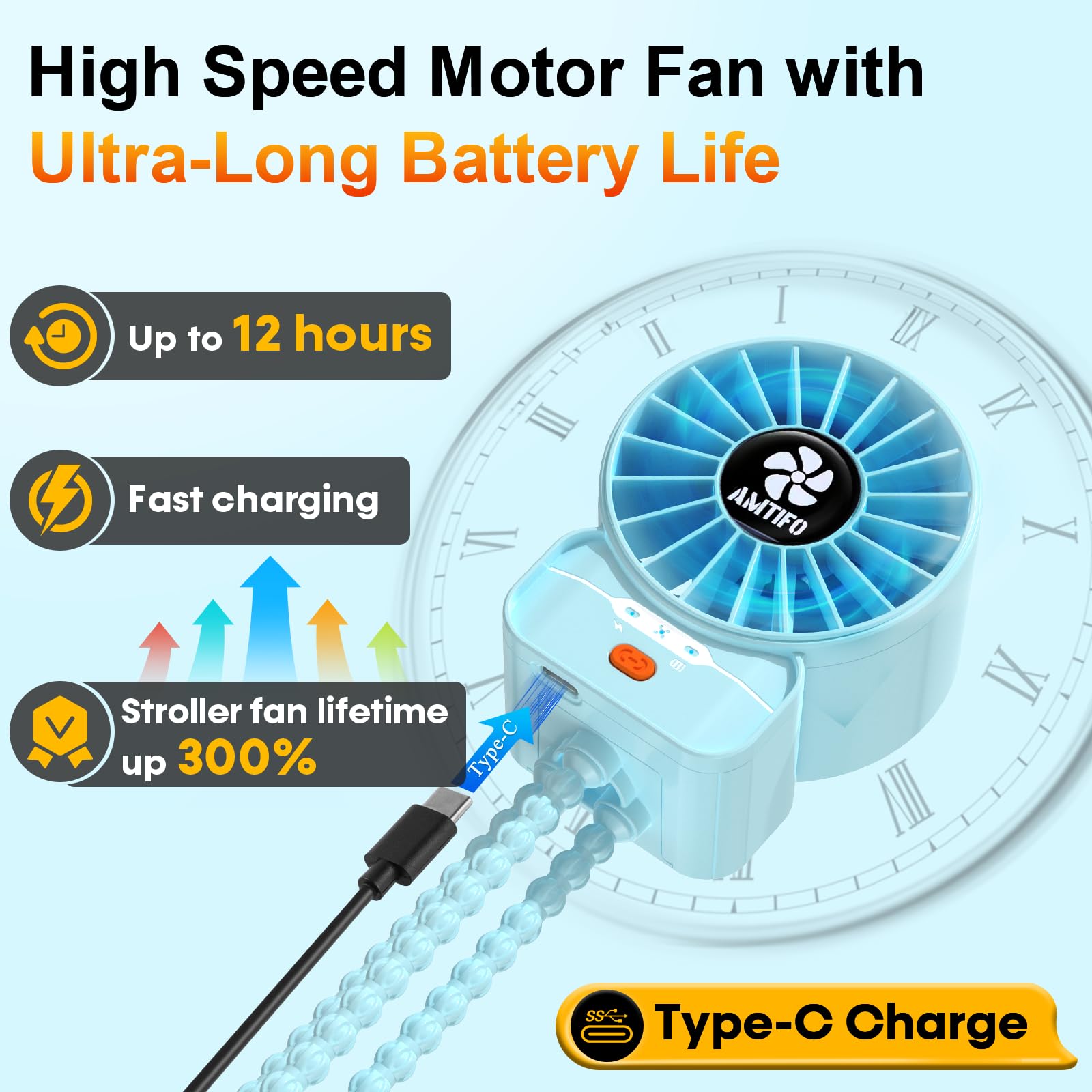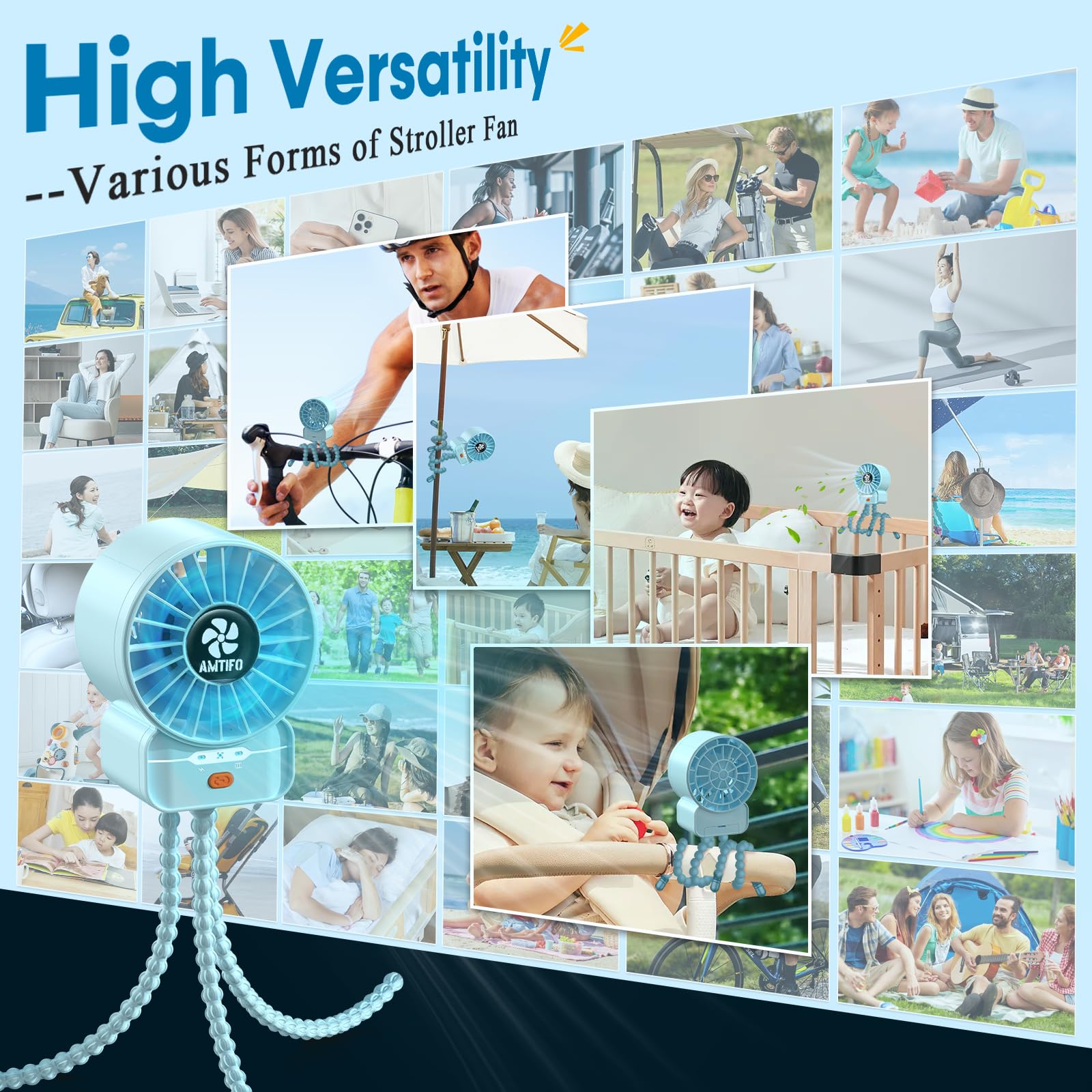 AMTIFO Blue Baby Fan - Ventilador de bebé recargable por USB