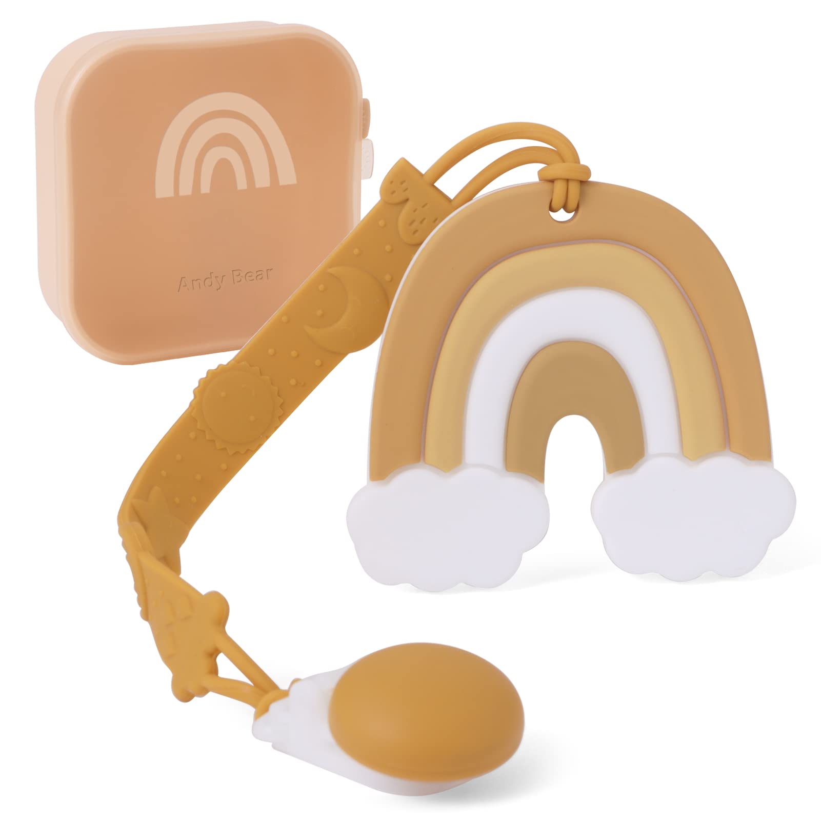 Andy bear- Juguete para la dentición del bebé, forma de arco iris con estuche de viaje, mostaza