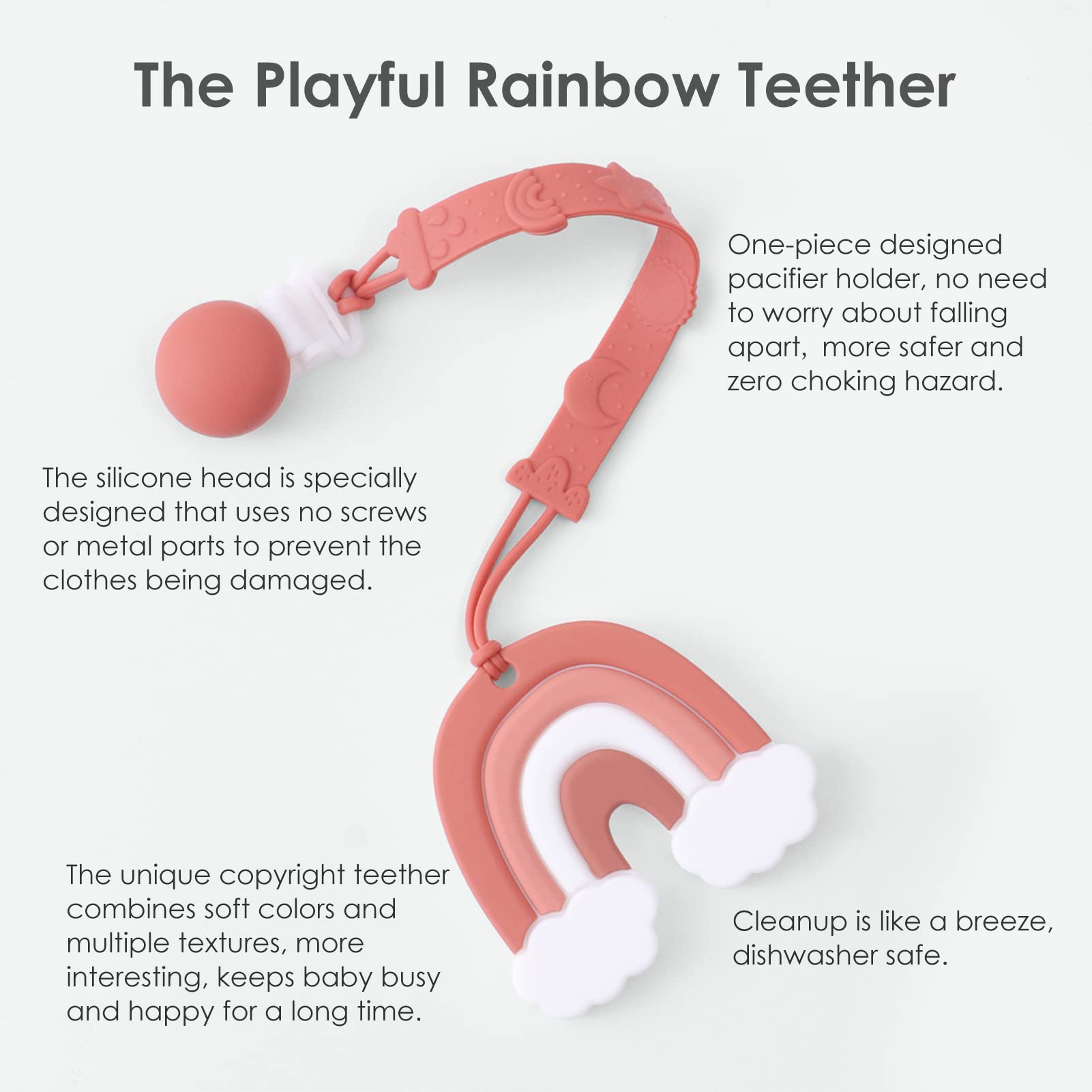 Seguro para el bebé: 100% silicona de grado alimenticio y libre de BPA, PVC, ftalatos, plomo y cadmio. Nuestros juguetes de dentición de silicona para bebé con clips para chupete son totalmente probados por un laboratorio independiente y cumplen con las normas CPSIA. Seguro e ideal para el desarrollo joven.
