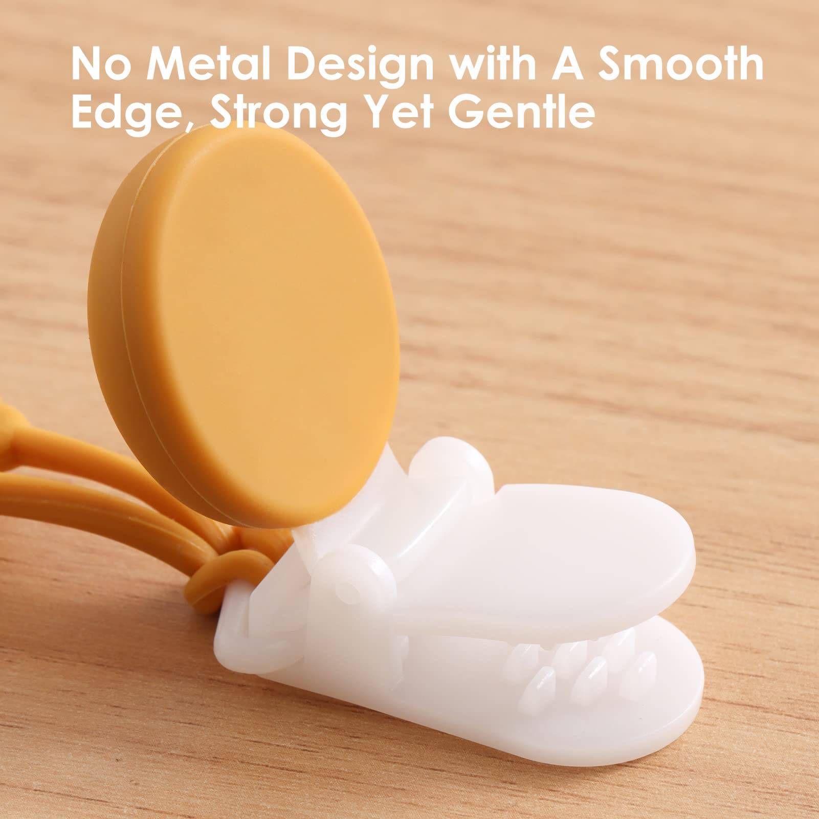 Sin metal, por lo que no se oxida: nuestra cabeza de silicona moldeada está especialmente diseñada que no utiliza tornillos ni piezas de metal e inserciones de plástico para evitar que la ropa se dañe. Todos los bordes redondeados y sin puntos afilados hacen que se fije fácilmente a las prendas del bebé, también protege al bebé de cualquier riesgo de arañazos.