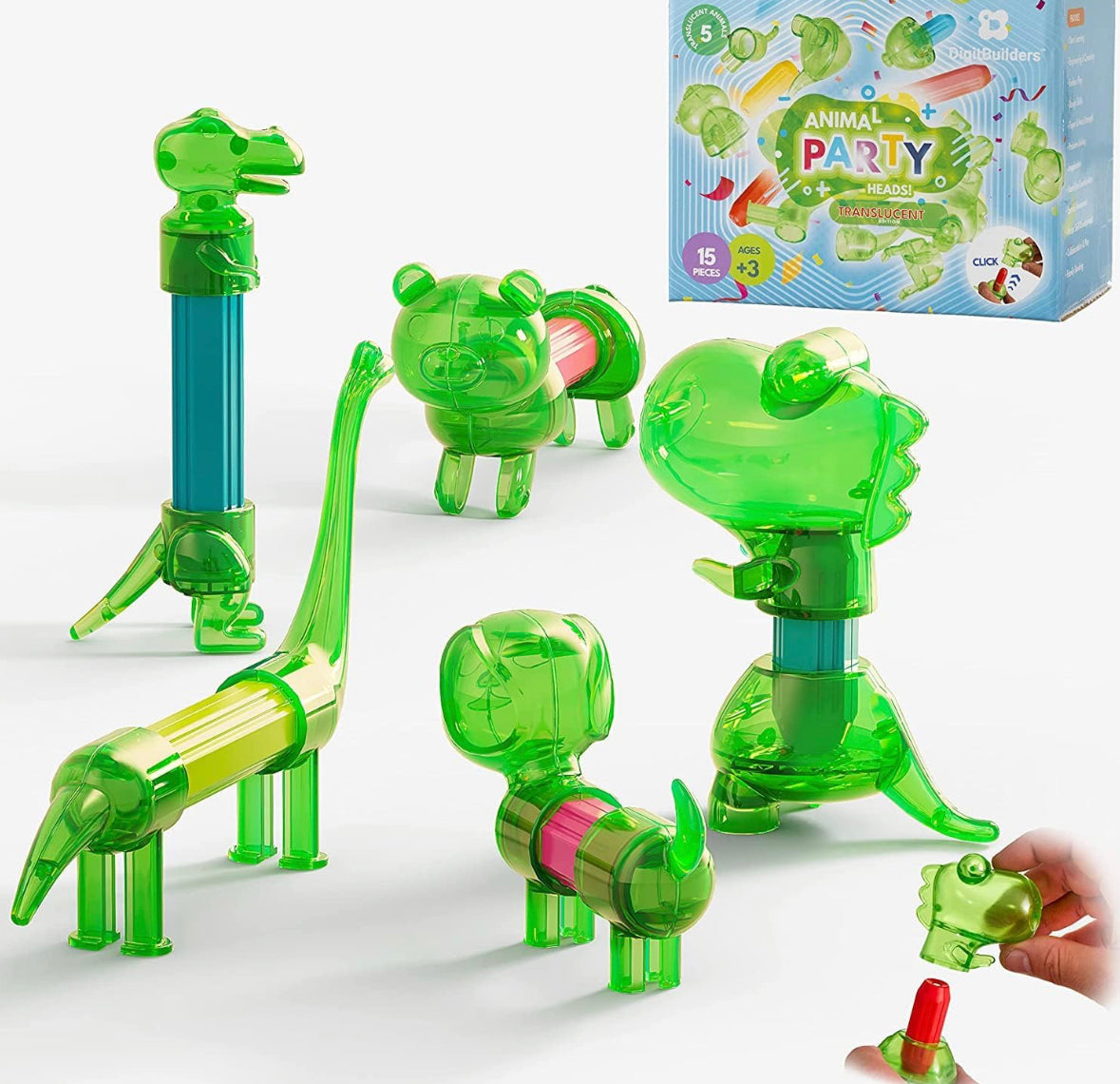 Animales magnéticos transparentes verdes inteligentes para construcción, mezcla y combina la selva, juguete de tallo para ansiedad, 15 piezas