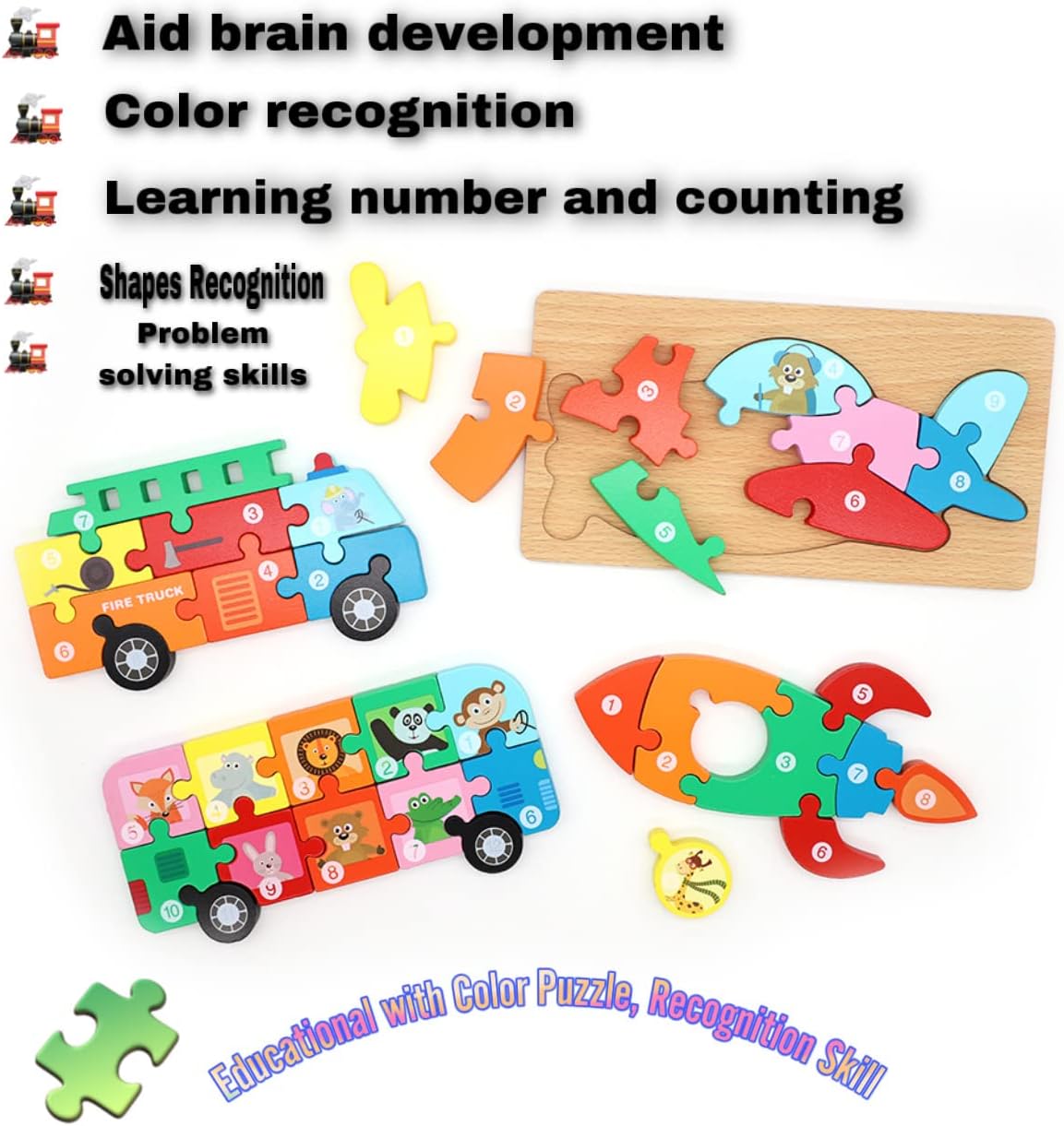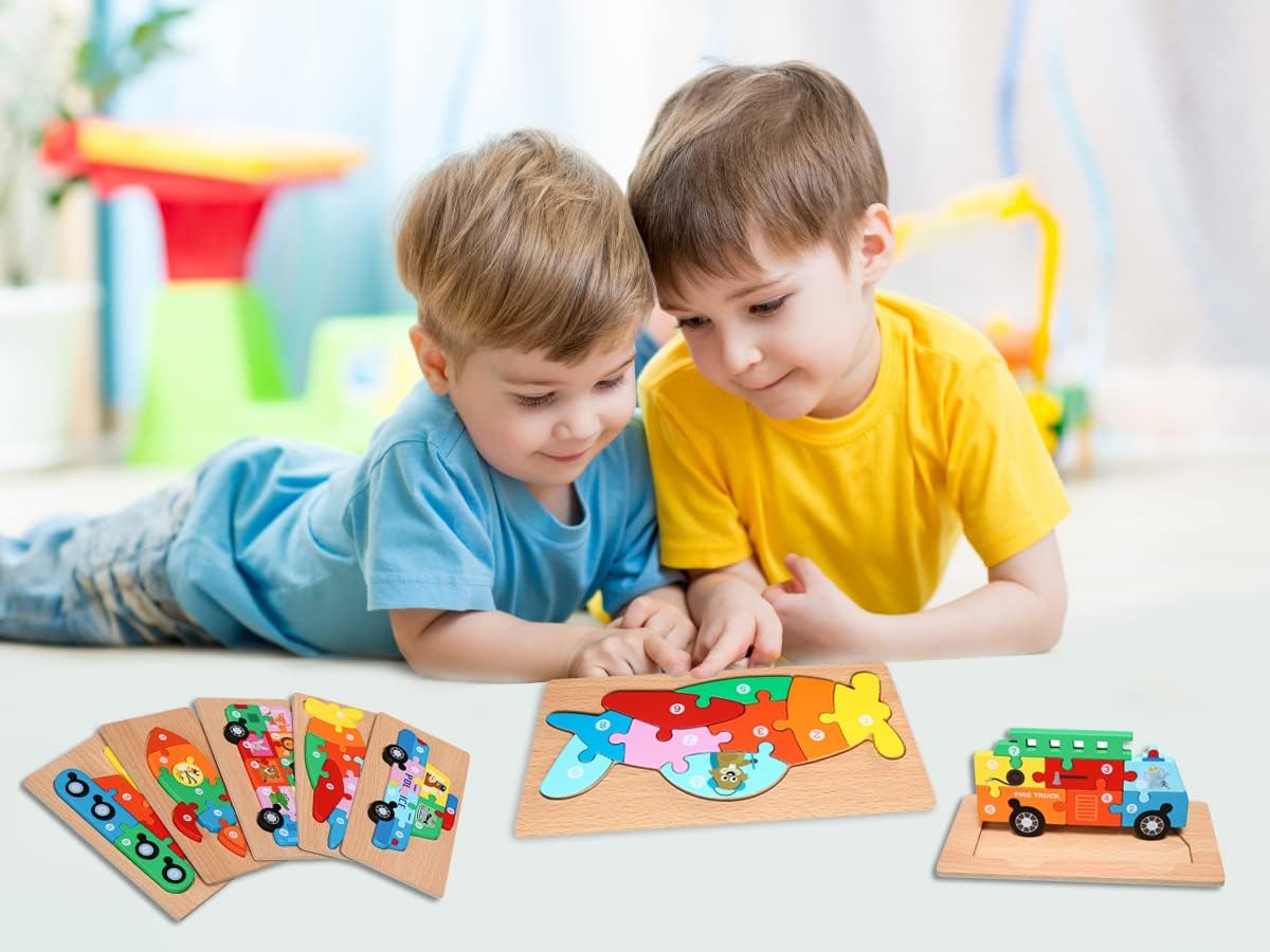 Las piezas están libres de: plomo, BPA, astillas y acabadas con una pintura a base de agua y no tóxica., Bonito y atractivo: los rompecabezas ATHENSAGORA para niños a partir de 3 años fomentan la estimulación sensorial a través de colores vibrantes y formas de vehículos lindas como avión, autobús, camión de bomberos y triceratops, Aprender a través del juego: nuestros rompecabezas de madera para niños de 3 años en adelante ofrecen numerosas ventajas para el desarrollo de un niño, incluyendo resolución de problemas, reconocimiento de formas, concentración mejorada, coordinación ojo-mano, mayor memoria mientras pasas un rato fantástico.,