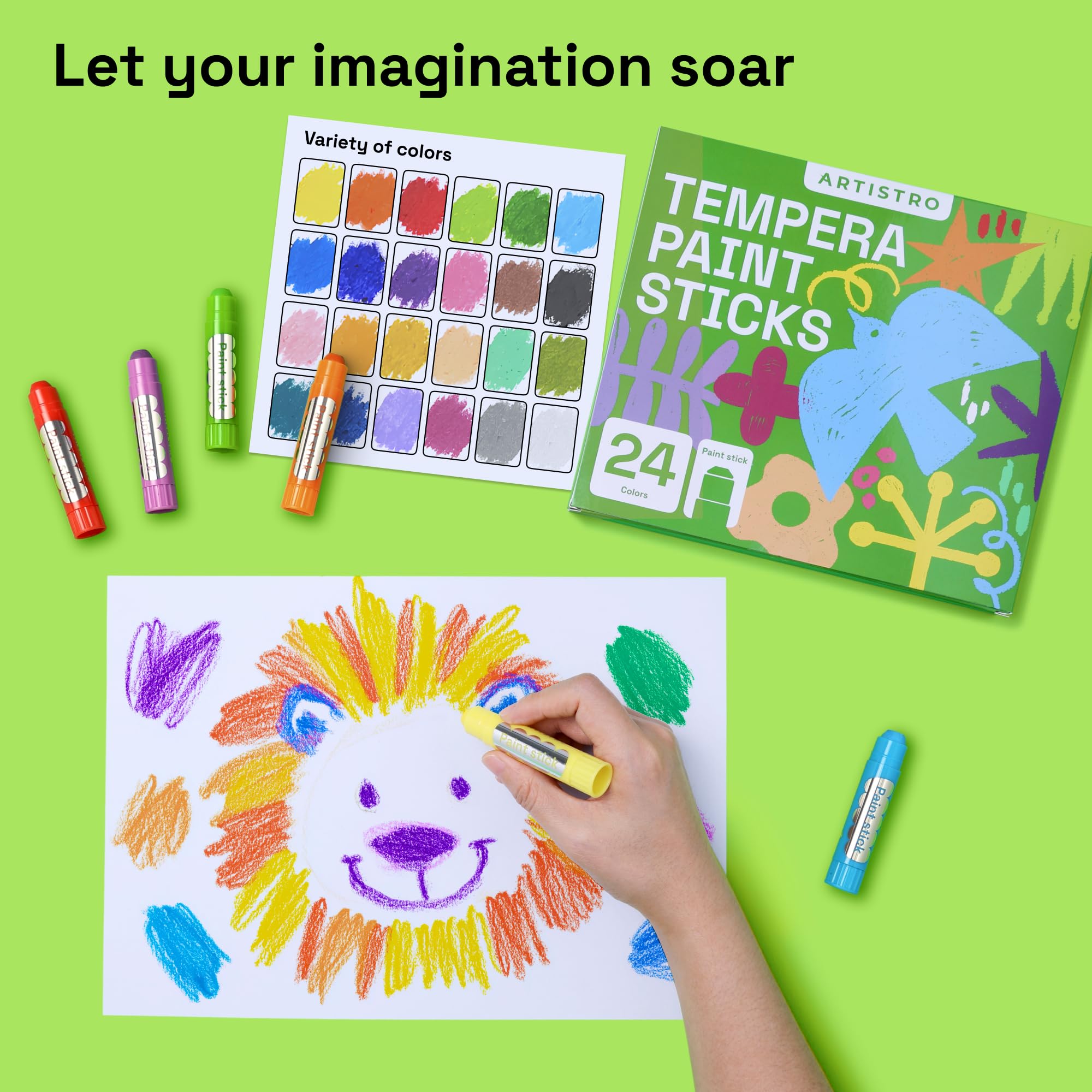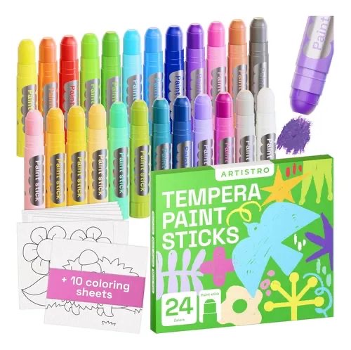 ARTISTRO Varillas de pintura de témpera 100% lavables para niños, 24 marcadores de pintura no tóxicos