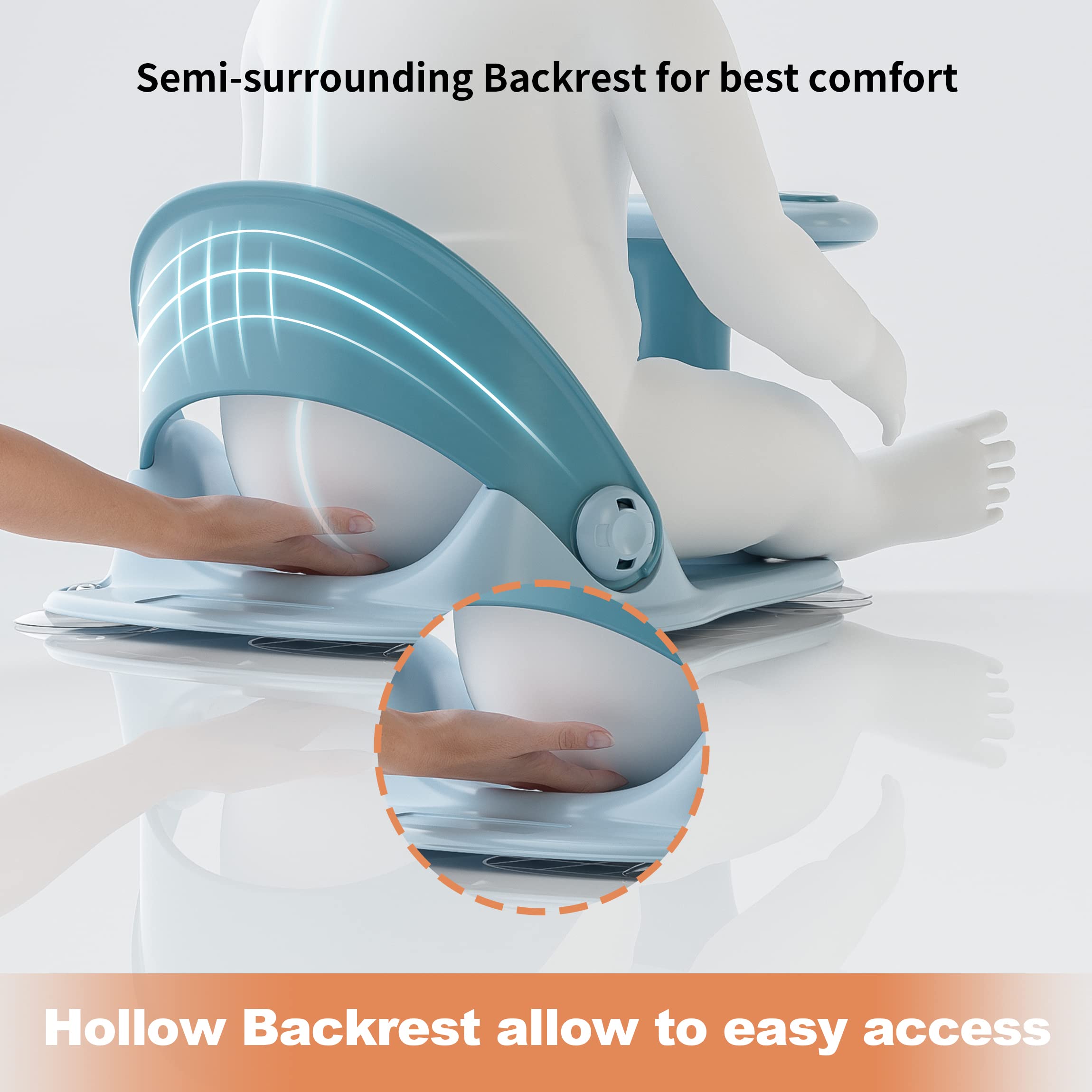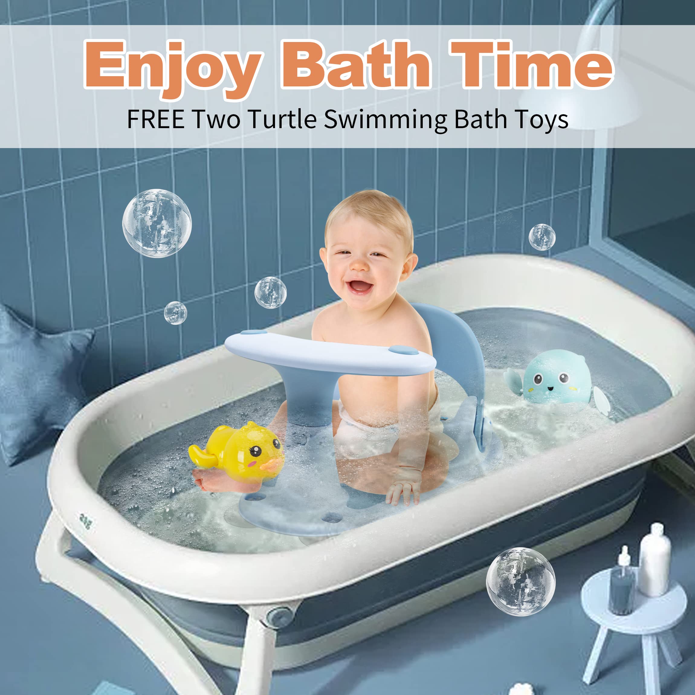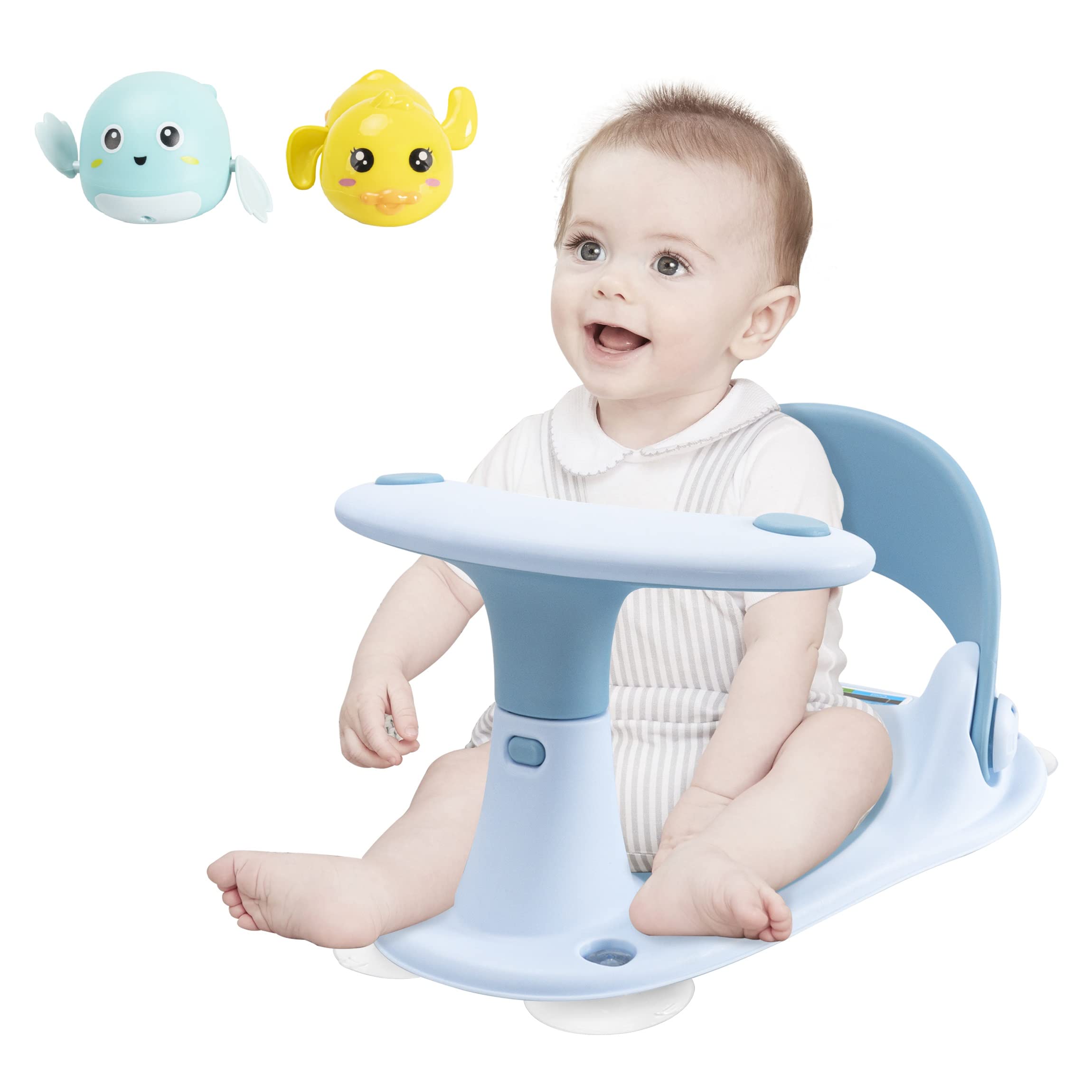 Asiento de baño para bebé, 2 juguetes de baño de tortuga + 4 ventosas + termómetro de agua