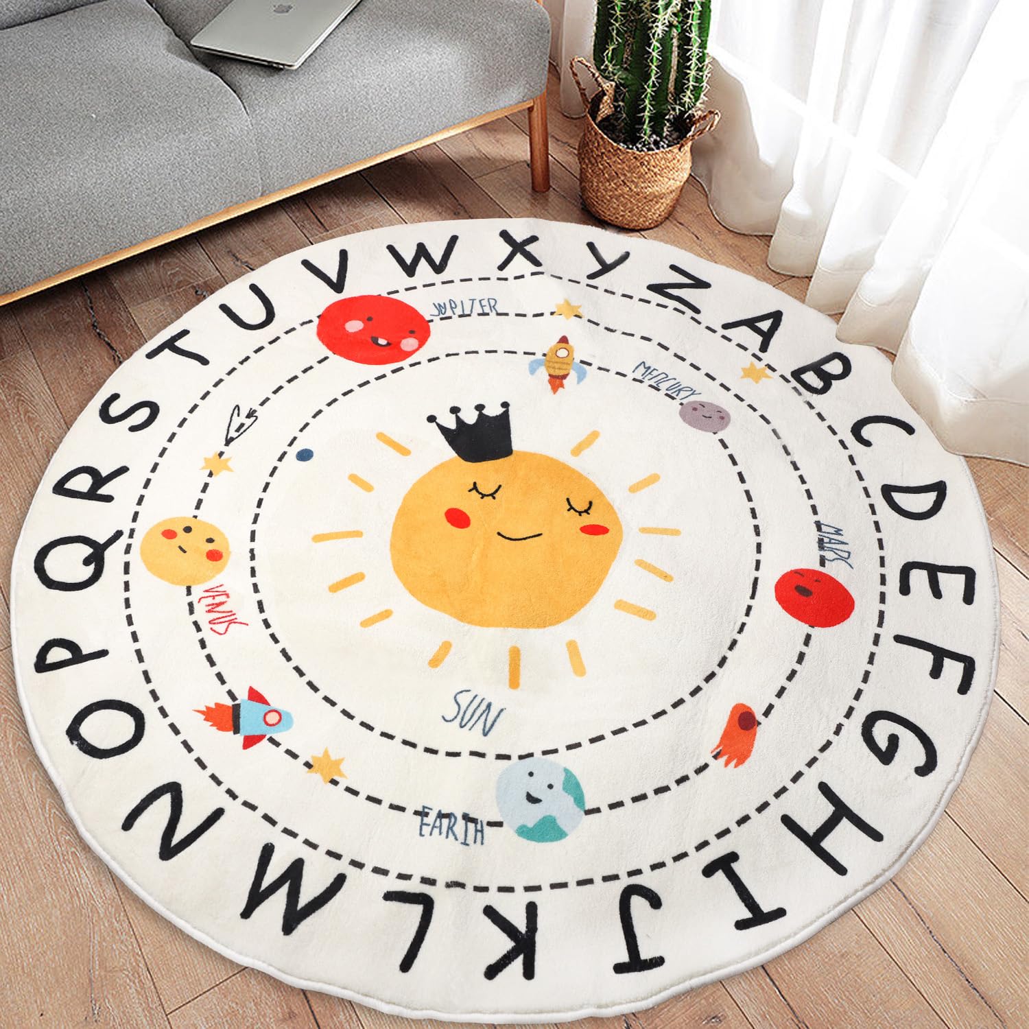 ATHNG Alfombra circular esponjosa de caricaturas de 32 pulgadas