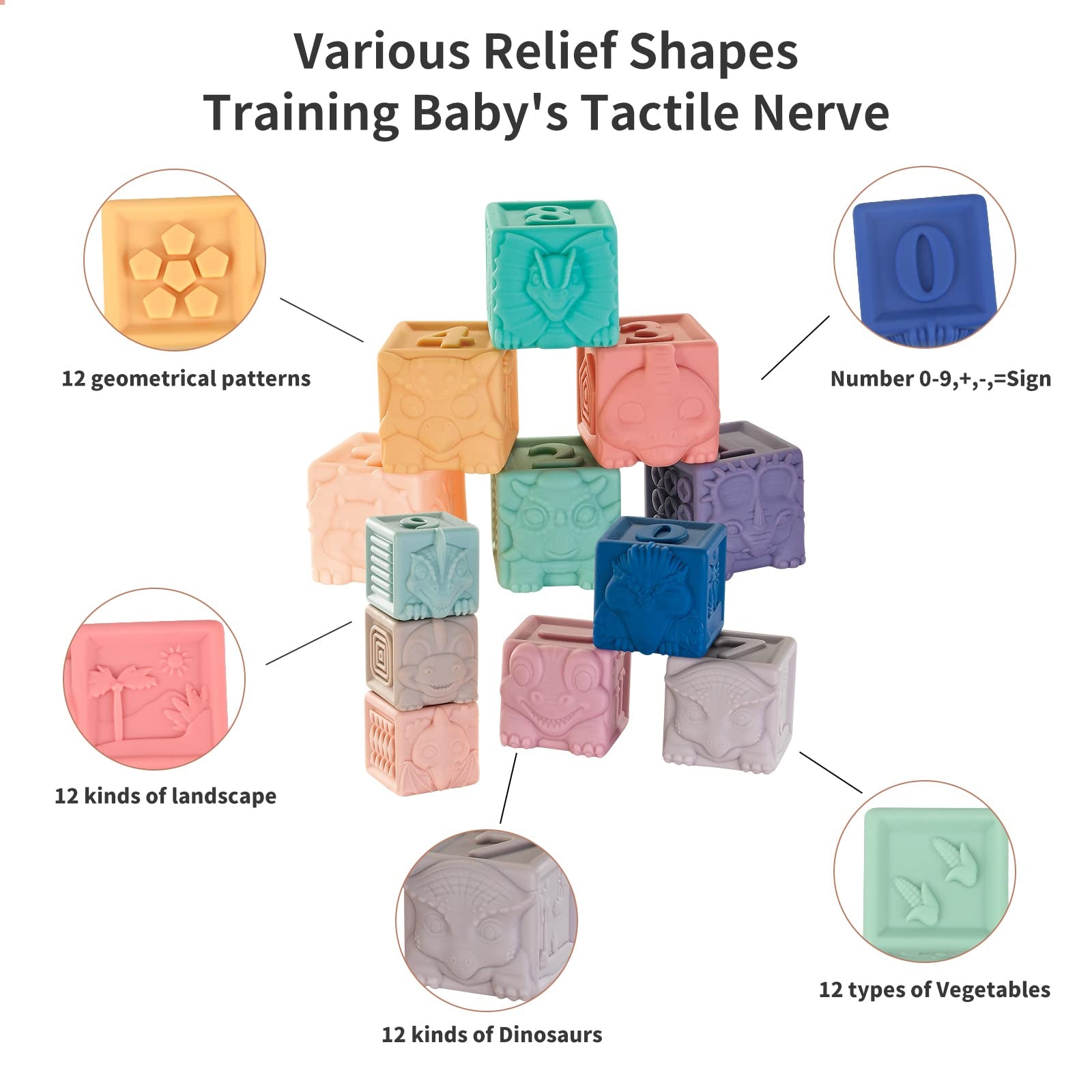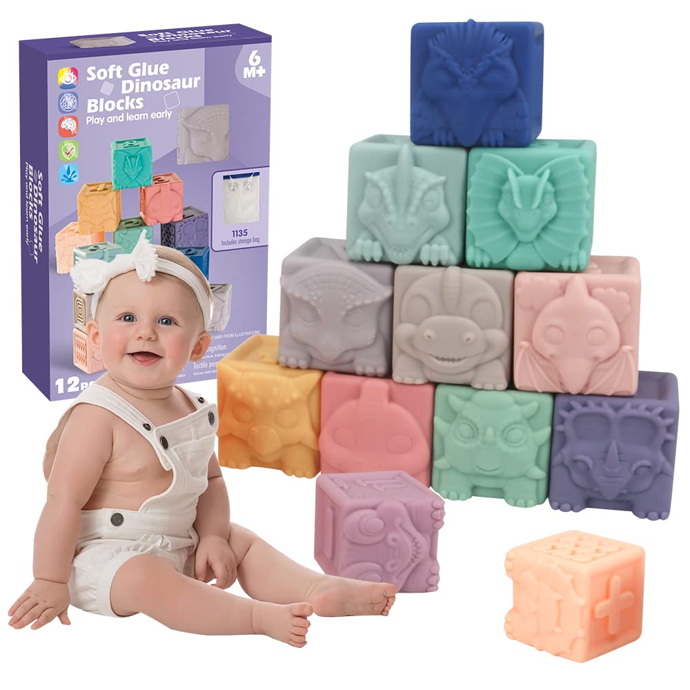 Aulynp Bloques de bebé 12 piezas de bloques apilables suaves