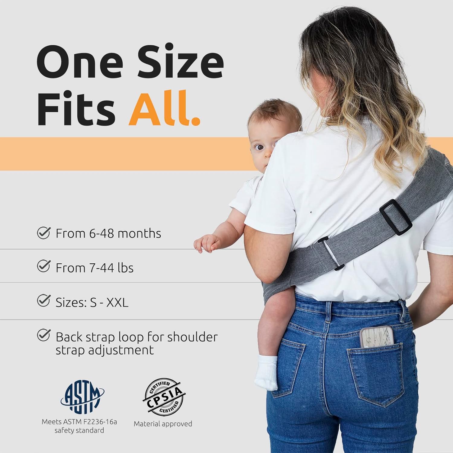 Fácil de poner y quitar: con un diseño sencillo, nuestro portabebés ofrece un entorno suave y seguro para que los bebés pegajosos se acurruquen con sus padres. Por favor tanto a grandes como a pequeños. El portabebés puede acomodar a bebés de entre 6 y 48 meses e incluso está diseñado para niños pequeños de hasta 44 libras.