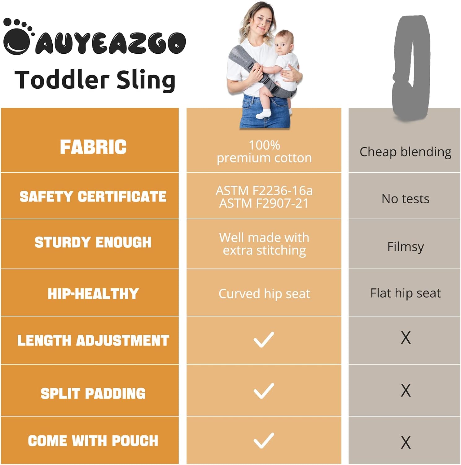 AUYEAZGO- Portabebés ergonómico para bebé con correa ajustable,
