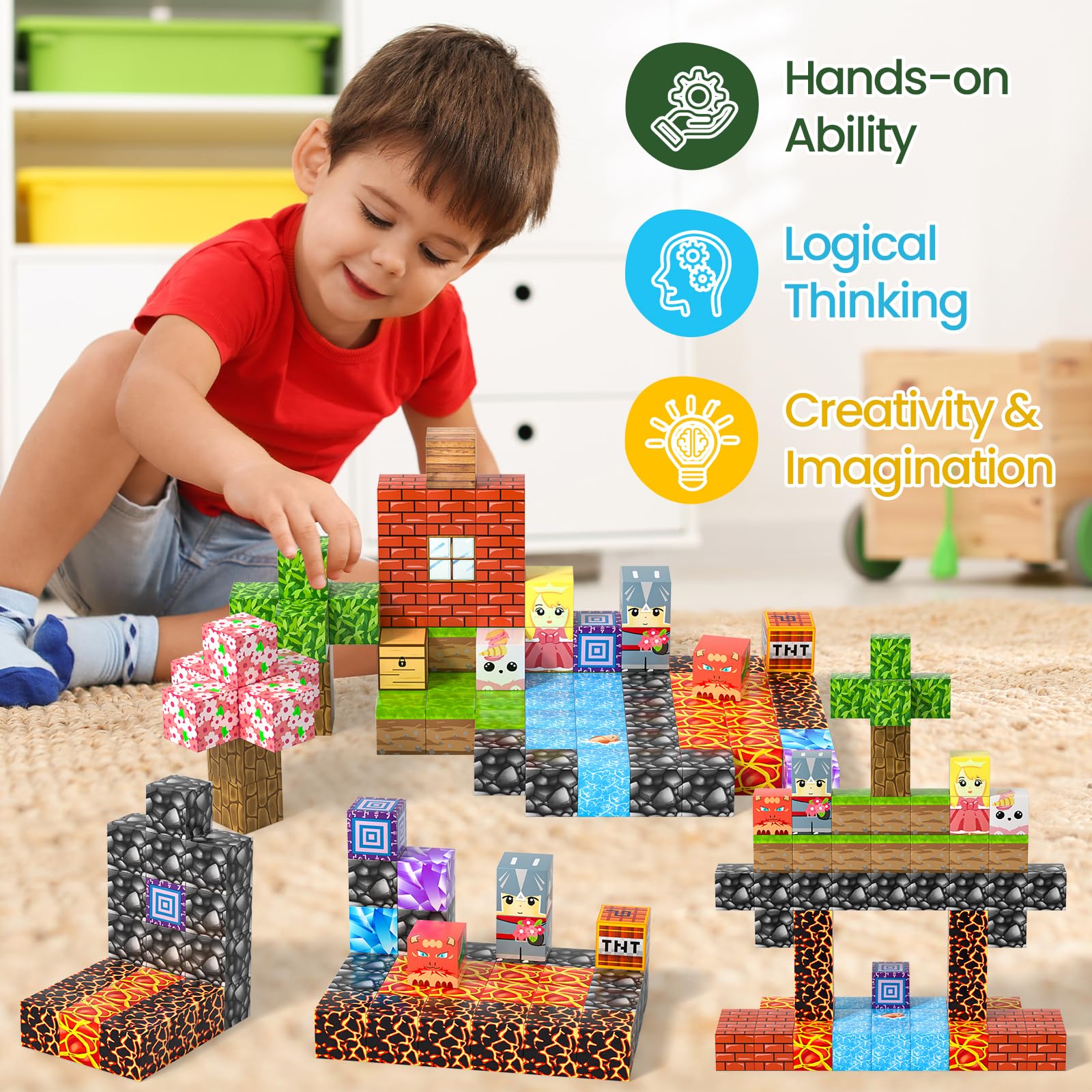 Avaxesy 84 bloques magnéticos para niños pequeños Cubos de construcción